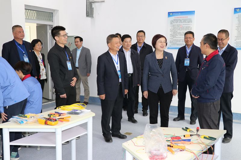 學(xué)院黨委書記、院長趙明向王海燕一行詳細(xì)匯報了學(xué)院基本情況、黨史學(xué)習(xí)教育、技能甘肅、“雙高計劃”項目建設(shè)、人才培養(yǎng)、師資隊伍建設(shè)、招生就業(yè)、校企合作、“1+X”證書試點、技能大賽、課程思政改革等情況,重點對與中科院上海應(yīng)用物理研究所聯(lián)合舉辦中科低碳新能源技術(shù)學(xué)院情況進(jìn)行了匯報。王海燕一行實地查看了中科低碳新能源技術(shù)學(xué)院實驗實訓(xùn)室,并對積極備戰(zhàn)國賽的師生給予鼓勵。