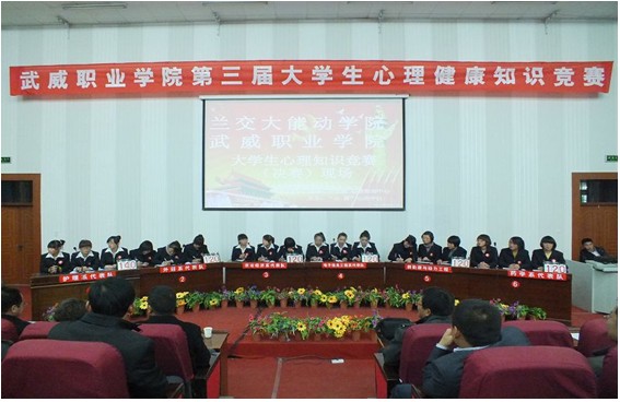 11月12日晚,由院學(xué)生處心理健康教育中心、院團(tuán)委主辦,心翼心理學(xué)社承辦的第三屆大學(xué)生心理健康知識(shí)競(jìng)賽決賽在學(xué)院東階梯教室舉行。副院長(zhǎng)王永緒同志應(yīng)邀參加活動(dòng)并致辭,指明本次活動(dòng)的目的和必要性,并預(yù)?;顒?dòng)圓滿成功。參加本次活動(dòng)的還有學(xué)生處、能動(dòng)學(xué)院辦公室、院團(tuán)委負(fù)責(zé)人以及各系書記、輔導(dǎo)員。