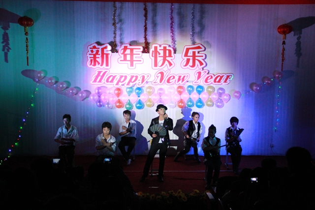 我系趙磊老師的薩克斯獨奏節(jié)奏明朗,富有磁力,優(yōu)美的旋律深深地吸引了全體觀眾。12級光熱班的張新輝,張一凡等同學(xué)反串《甄嬛傳》令現(xiàn)場的觀眾捧腹大笑。一首《祝?!返睦收b牽掛了所有觀眾,武術(shù)《中國功夫》令得全場驚呼,舞蹈《江南style》的精彩演出吸引了所有人的眼球。最后晚會在《同一首歌》的大合唱中緩緩落幕。