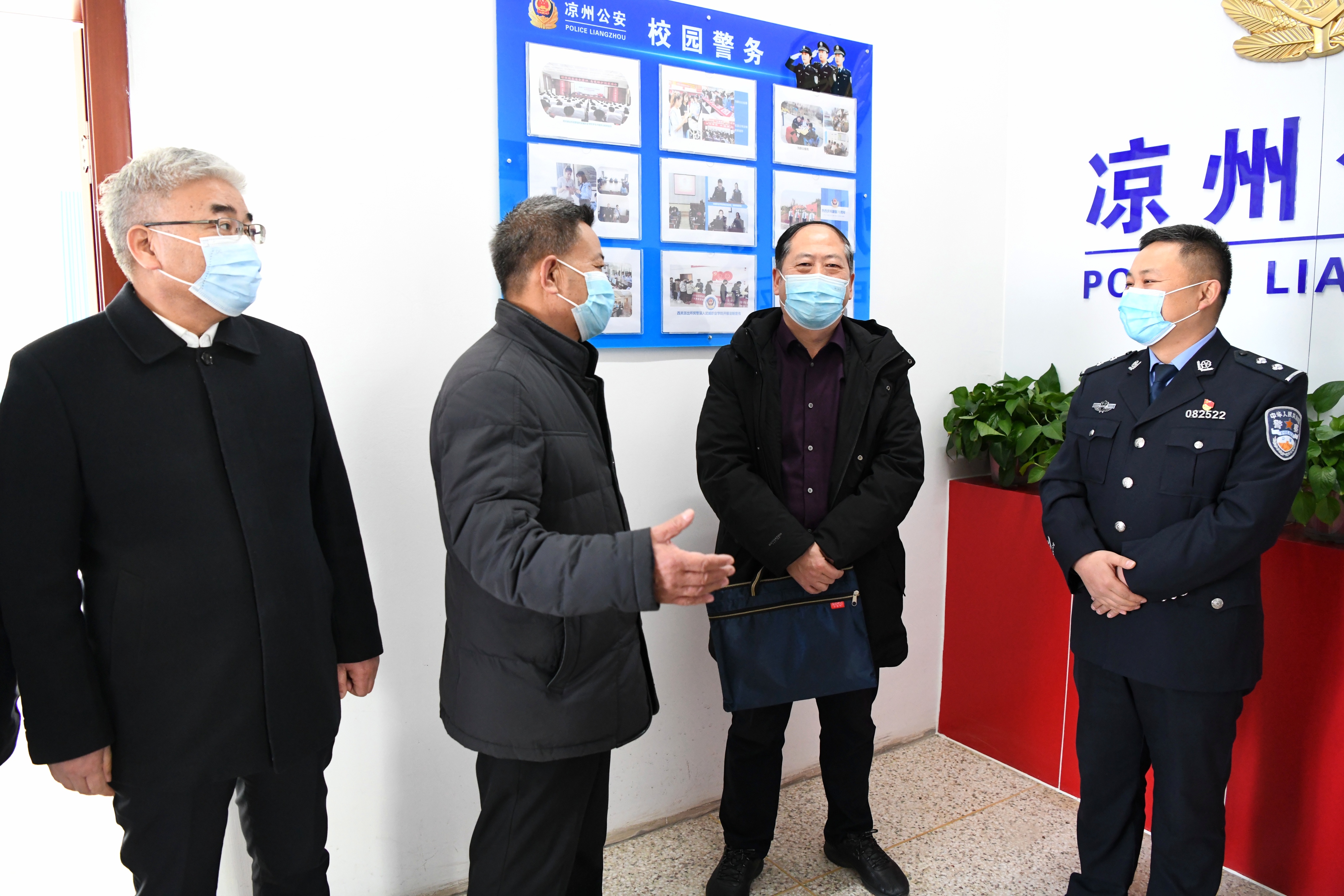 1月13日下午,平安甘肅建設(shè)工作第八考評組在省高等學校服務(wù)中心主任崔亮的帶領(lǐng)下來校實地檢查考評2021年度平安校園建設(shè)工作。市委政法委常務(wù)副書記連林中,學院黨委書記、院長趙明,黨委委員、副院長何毅,黨委委員、紀委書記、監(jiān)察專員陳曉煜,黨委委員、副院長王守云陪同檢查考評。