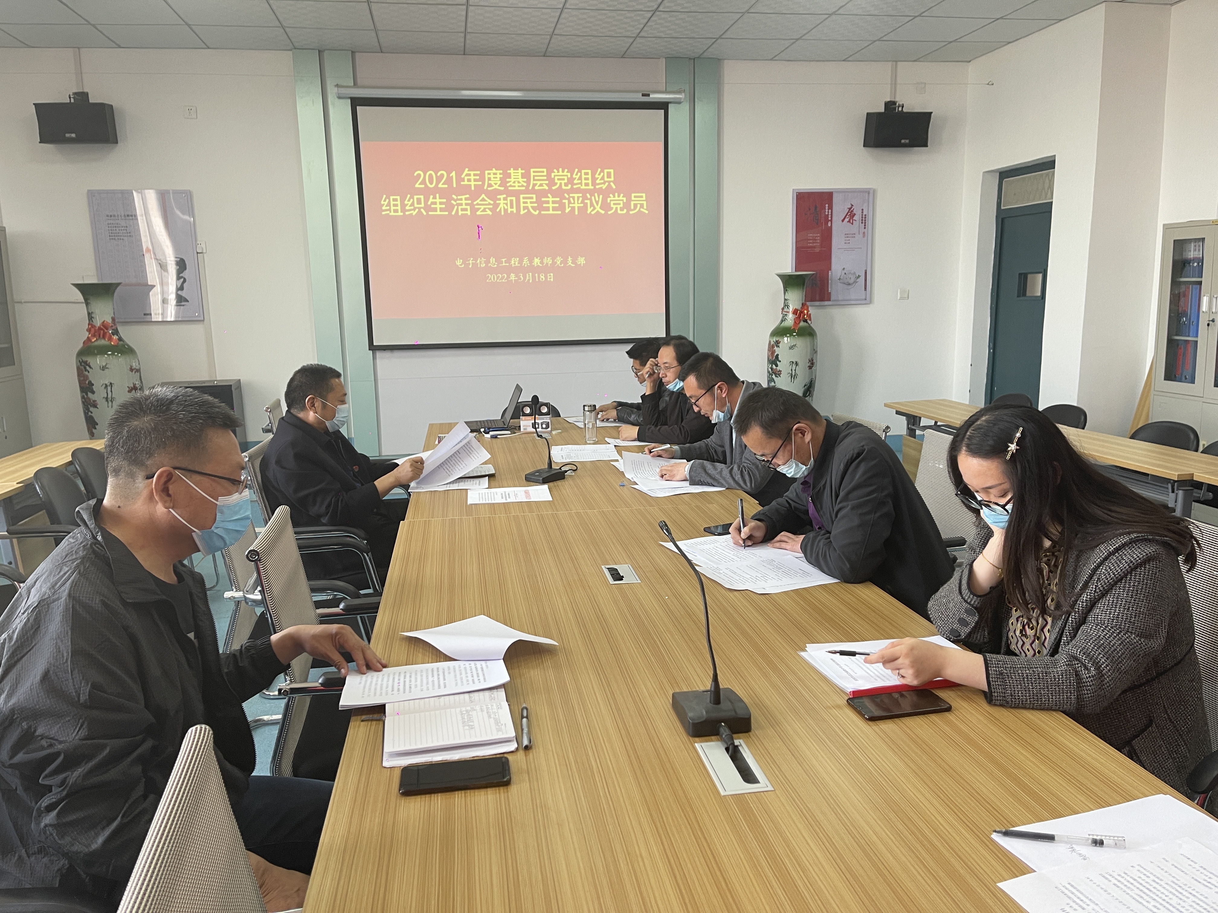 3月18日,電子信息工程系教師黨支部召開2021年度基層黨組織組織生活會和開展民主評議黨員,會議由支部書記袁青年同志主持,教師黨支部全體黨員參會。學(xué)院黨委委員、副院長王永緒以普通黨員身份參加會議,并進(jìn)行了全程督導(dǎo)。