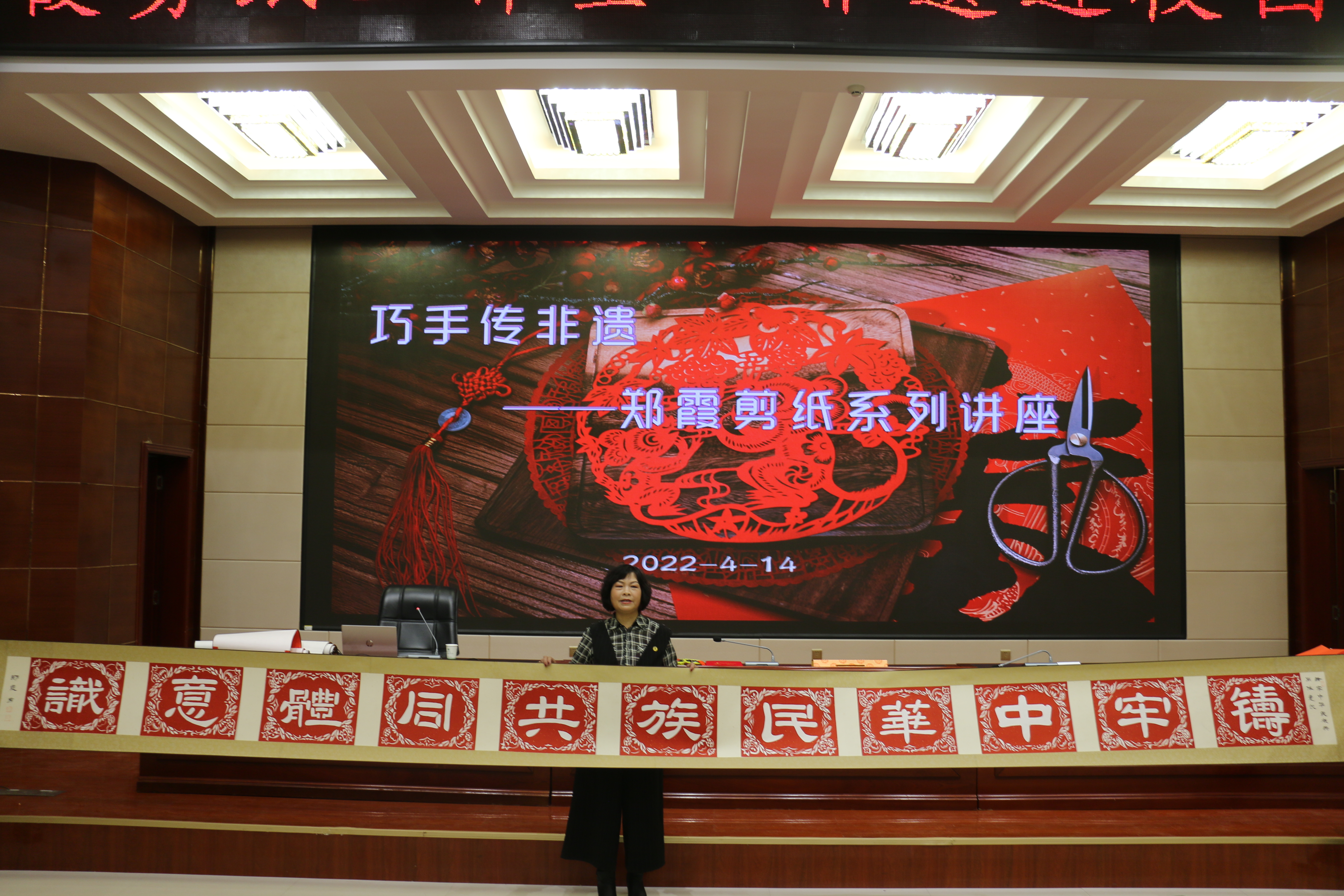 春和景明,草長鶯飛,在這萬物生長的季節(jié),文化傳承的種子也在拔節(jié)育穗。4月14日下午,中華優(yōu)秀傳統(tǒng)文化教學團隊及鄭霞剪紙工作室聯(lián)合在菁英廳舉辦了巧手傳非遺——鄭霞剪紙系列講座活動。