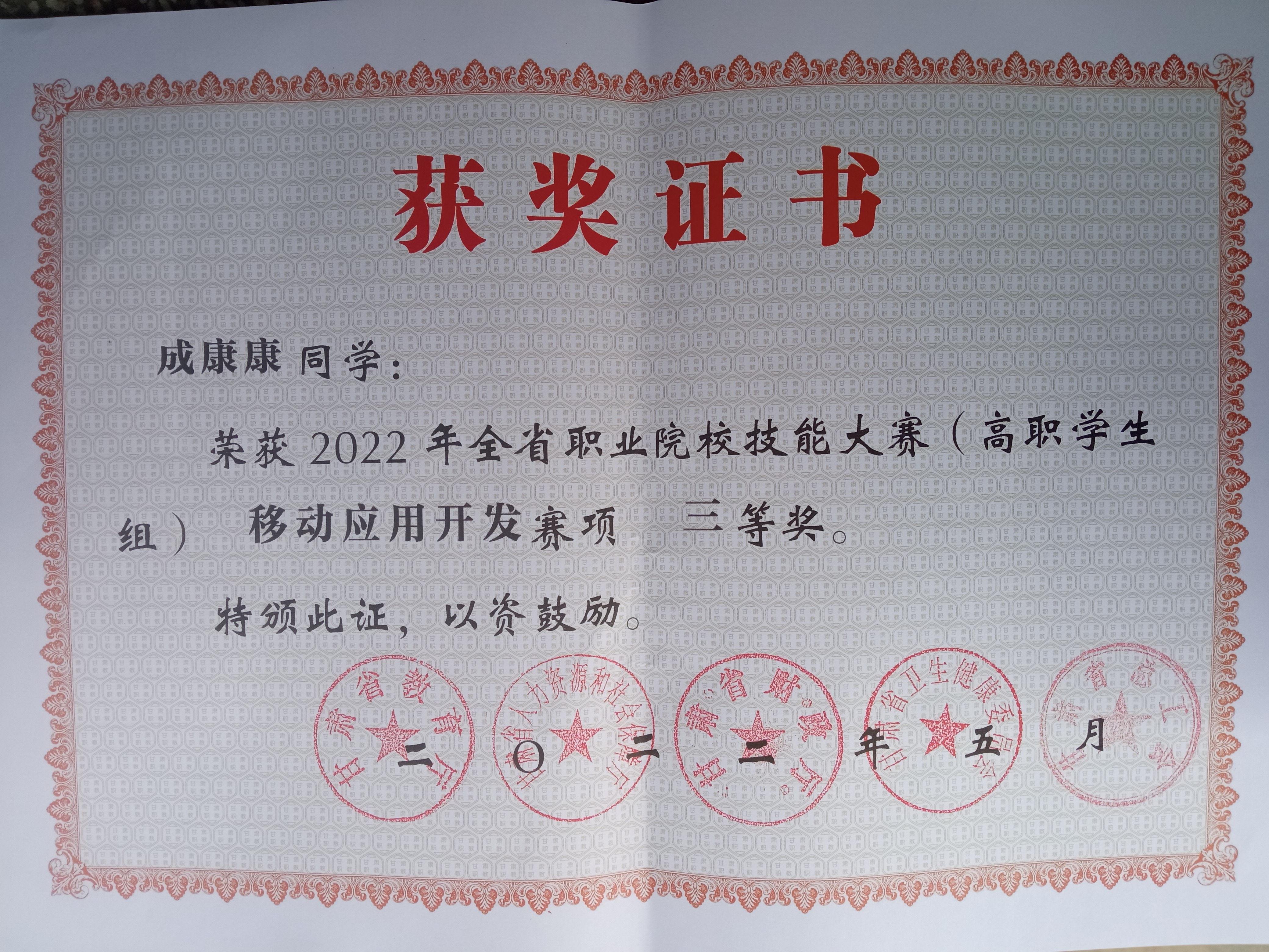 ?4月26日,2022年甘肅省職業(yè)院校技能大賽移動應(yīng)用開發(fā)賽項在武威職業(yè)學(xué)院舉辦,信息技術(shù)學(xué)院在該賽項中獲學(xué)生組一等獎、三等獎各1項。
