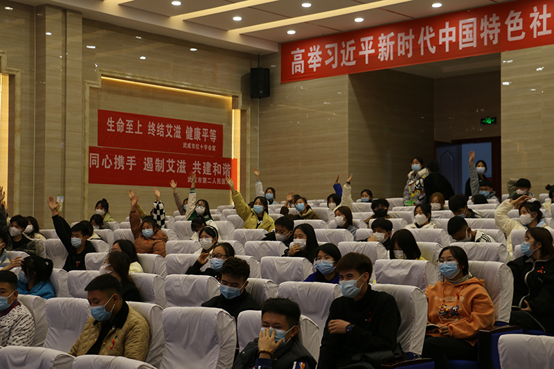 市疾控中心艾防科段曉虹主任和市第二人民醫(yī)院俞文麗主任分別就艾滋病預(yù)防與控制、hpv檢測與臨床應(yīng)對進(jìn)行了詳細(xì)的普及講授,內(nèi)容豐富、講解生動、意義深刻,使學(xué)生充分認(rèn)識到艾滋病的嚴(yán)重危害,切實掌握艾滋病預(yù)防知識,消除對艾滋病的恐懼心理,提高自身保護(hù)意識和防范能力??破罩v座結(jié)束后,全場學(xué)生踴躍加入了有獎知識競答,現(xiàn)場氣氛熱烈,學(xué)生熱情高漲,很好的調(diào)動了學(xué)生主動掌握防艾知識的積極性。