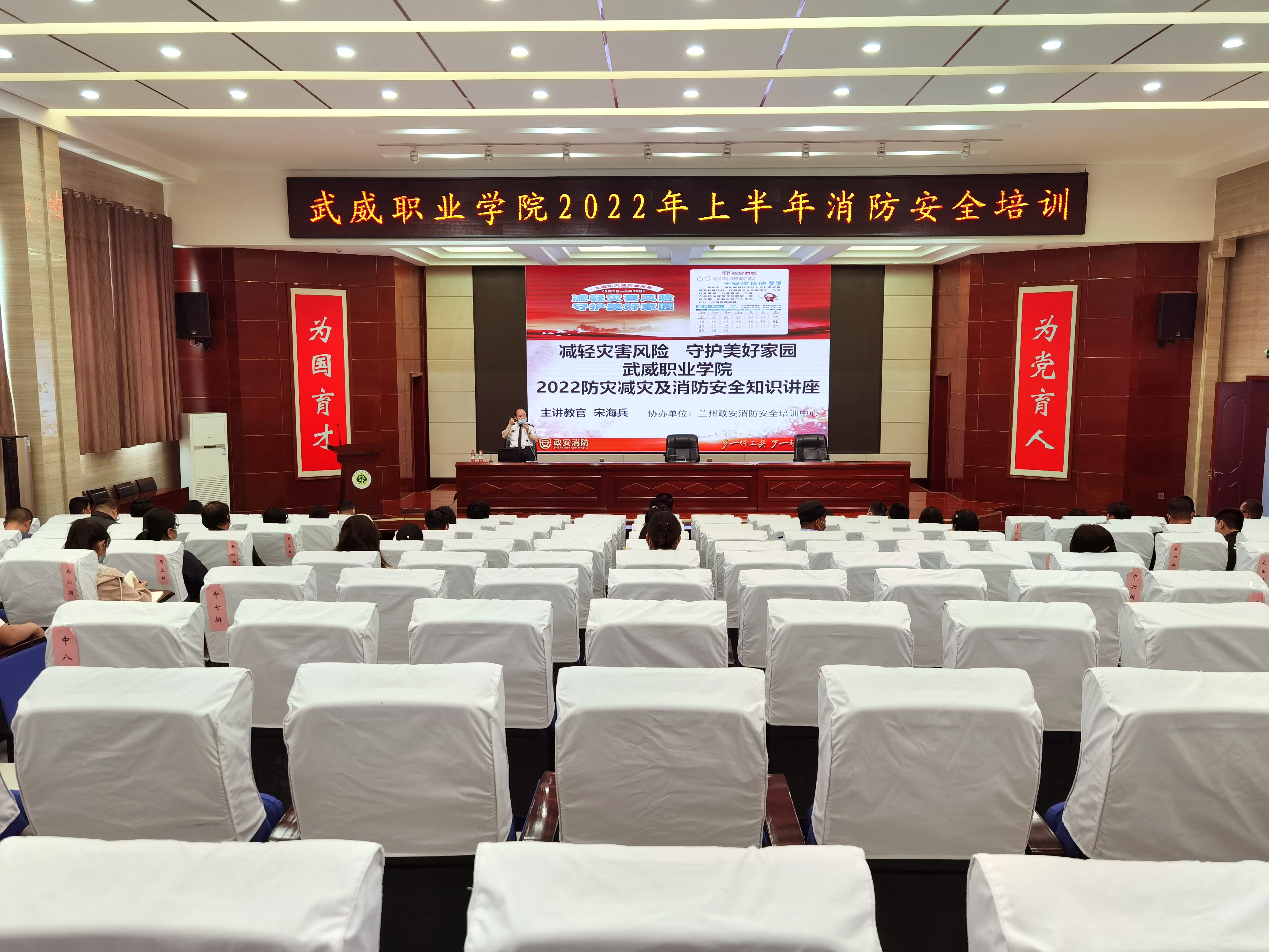 5月18日下午,學(xué)校在大學(xué)生發(fā)展中心菁英廳舉辦了2022年上半年消防安全知識(shí)培訓(xùn)。蘭州政安消防教官宋海斌應(yīng)邀作了“減輕災(zāi)害風(fēng)險(xiǎn),守護(hù)美好家園”專(zhuān)題講座。各部門(mén)、二級(jí)學(xué)院安全信息員、實(shí)驗(yàn)實(shí)訓(xùn)室管理員、新進(jìn)教師和消控室、學(xué)生食堂等重點(diǎn)管理崗位人員參加了培訓(xùn)。