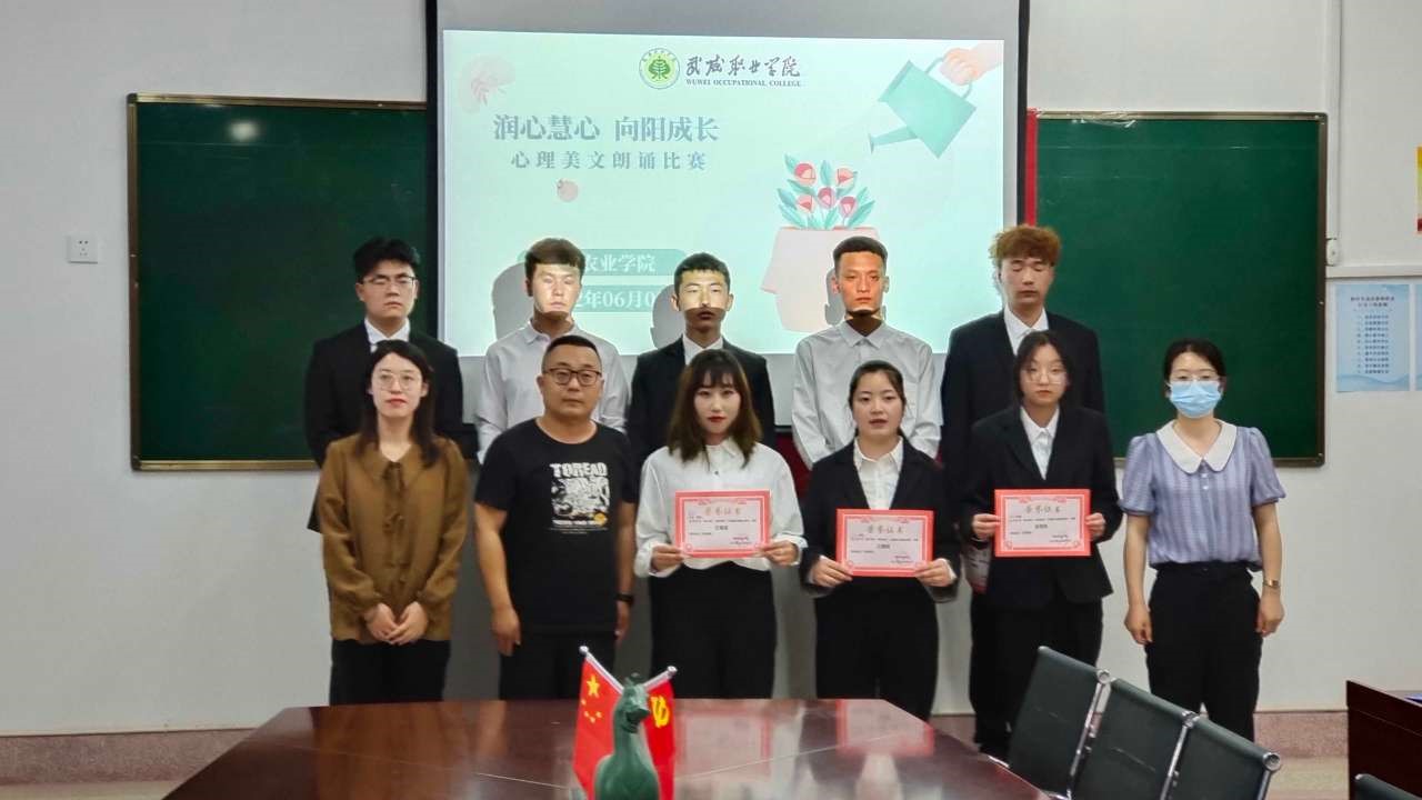 6月1日,現(xiàn)代農(nóng)業(yè)學(xué)院在行樹(shù)樓309舉辦了以“潤(rùn)心慧心,向陽(yáng)成長(zhǎng)”心理美文朗誦比賽,共8名學(xué)生選手參加比賽,3位老師參與活動(dòng)評(píng)審。此次心理美文朗誦比賽讓學(xué)生在感受心理美文魅力的同時(shí),涵養(yǎng)了身心,有利于塑造“自尊自信,理性和平,積極向上” 的健康心態(tài),對(duì)于提高學(xué)生的心理素質(zhì),塑造積極向上的心態(tài),培養(yǎng)良好的心理品質(zhì),營(yíng)造和諧的校園文化起到了積極的作用。