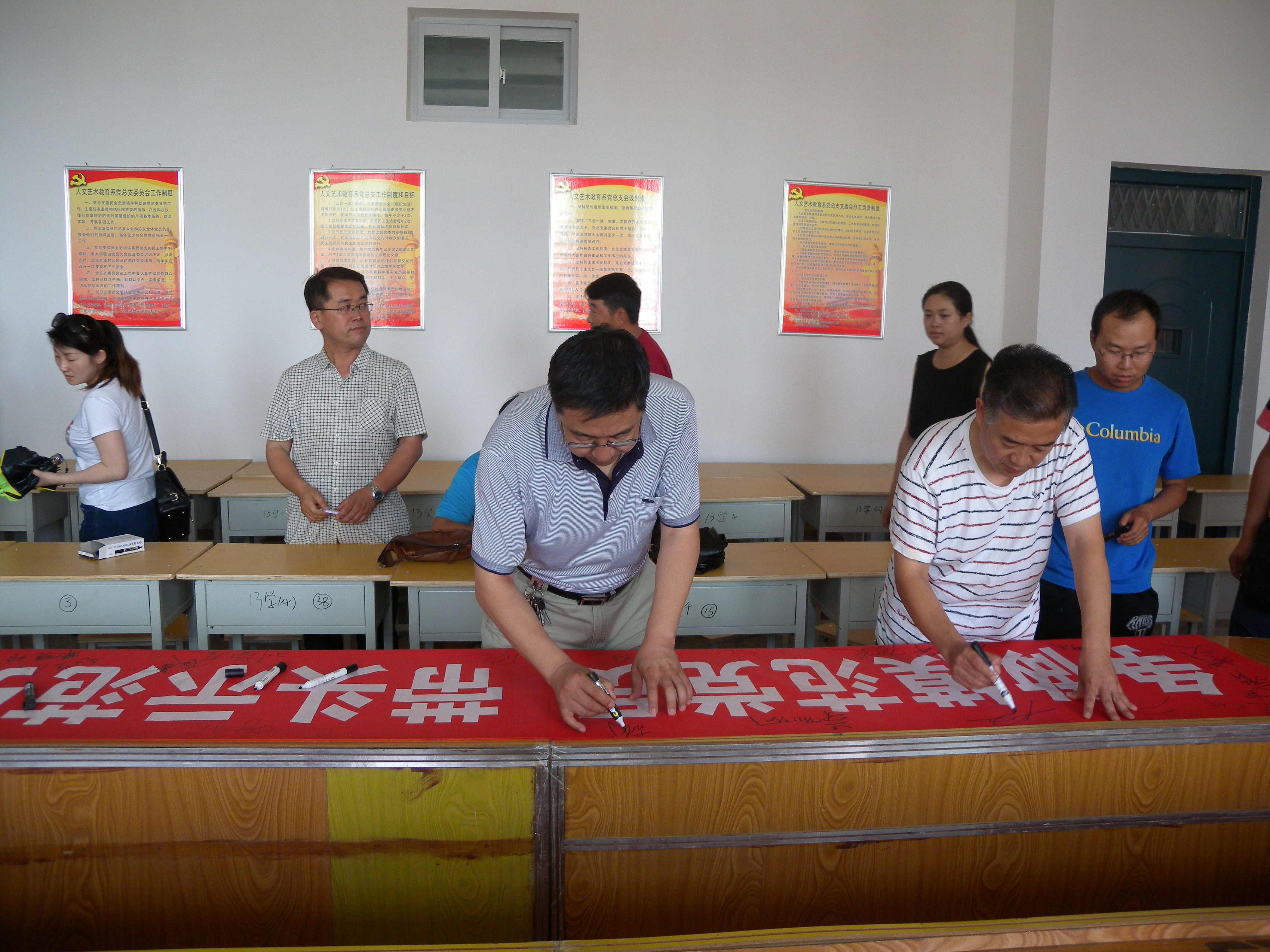 會后,全體師生黨員在“爭做模范黨員,帶頭示范引領(lǐng)”的橫幅上進(jìn)行了簽名活動。本次簽名活動,旨在發(fā)揮“一個(gè)黨員就是一面旗幟”的帶頭示范引領(lǐng)作用,激勵(lì)廣大黨員做“兩學(xué)一做”的忠實(shí)踐行者,使“兩學(xué)一做”學(xué)習(xí)教育取得實(shí)實(shí)在在的成效。