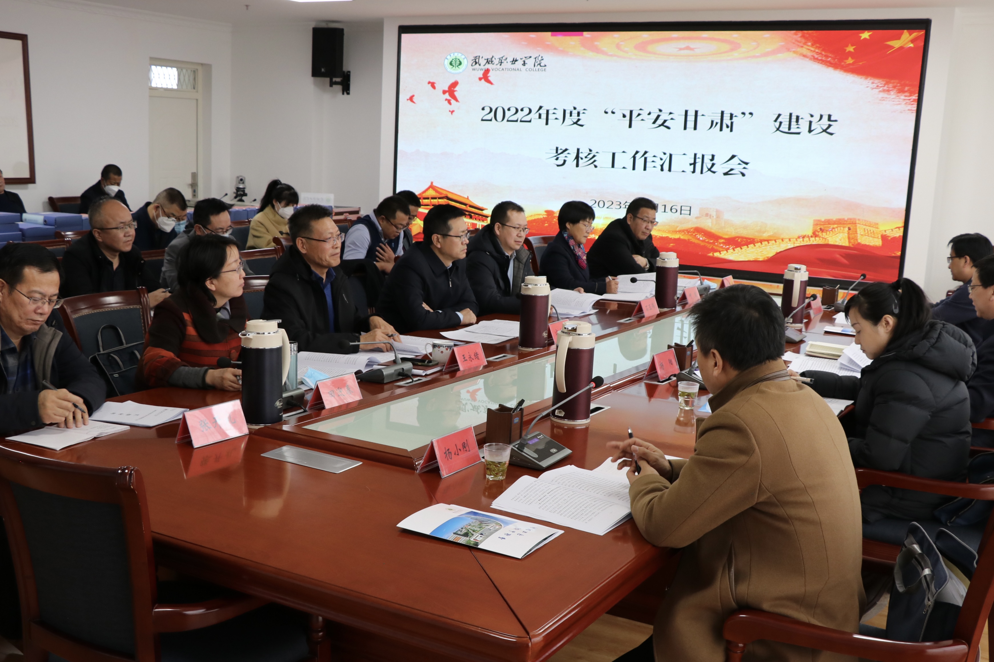2月16日下午,平安甘肅建設(shè)第七考評組組長、省信訪局副局長劉全生帶領(lǐng)考評組一行來學(xué)校,檢查考核學(xué)校2022年度平安建設(shè)工作。學(xué)校黨委委員、副校長王永緒主持會議,武威市市委政法委副書記寧生剛、在家校領(lǐng)導(dǎo)班子成員,各部門、二級學(xué)院負責(zé)人參加匯報會。