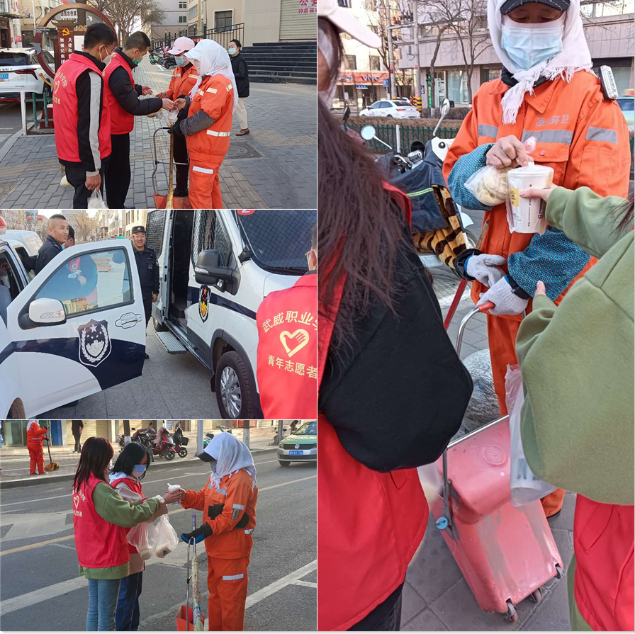 第一組志愿者為分布在文化廣場(chǎng)周邊工作崗位上的民警和環(huán)衛(wèi)工人送去一份份免費(fèi)愛(ài)心早餐,誠(chéng)摯感謝他們起早貪黑不辭辛苦為城市做出的貢獻(xiàn)。