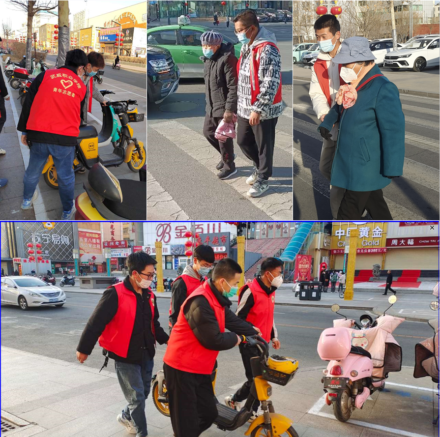 第二組志愿者在文化廣場(chǎng)十字路口配合交警進(jìn)行文明交通志愿服務(wù),引導(dǎo)大家維護(hù)交通秩序,文明出行。幫助行動(dòng)不便的老人過(guò)馬路,整理擺放路邊共享單車,電動(dòng)車。
