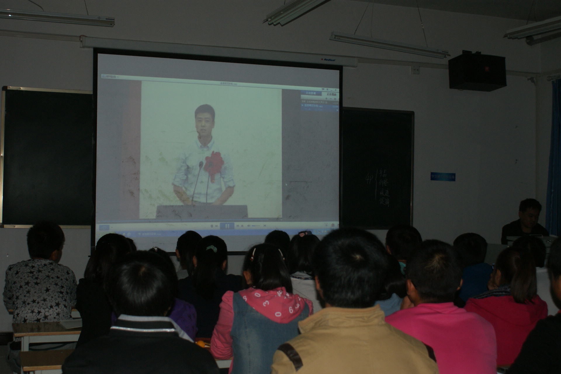 張曉4歲喪父,母親重病臥床。他自小挑起家庭重?fù)?dān),克服常人難以想象的困難,精心侍奉癱瘓?jiān)诖驳哪赣H,并以頑強(qiáng)的毅力完成了小學(xué)到大學(xué)的全部學(xué)業(yè),用自己的行動(dòng)實(shí)踐著"百善孝為先"的傳統(tǒng)美德,在2007年被評(píng)為全國道德模范?;顒?dòng)中每個(gè)多媒體教室內(nèi)鴉雀無聲,大家認(rèn)真觀看視頻,感受著來自模范的偉大力量,感受著屏幕上這個(gè)青年艱難而勵(lì)志的成長之路。