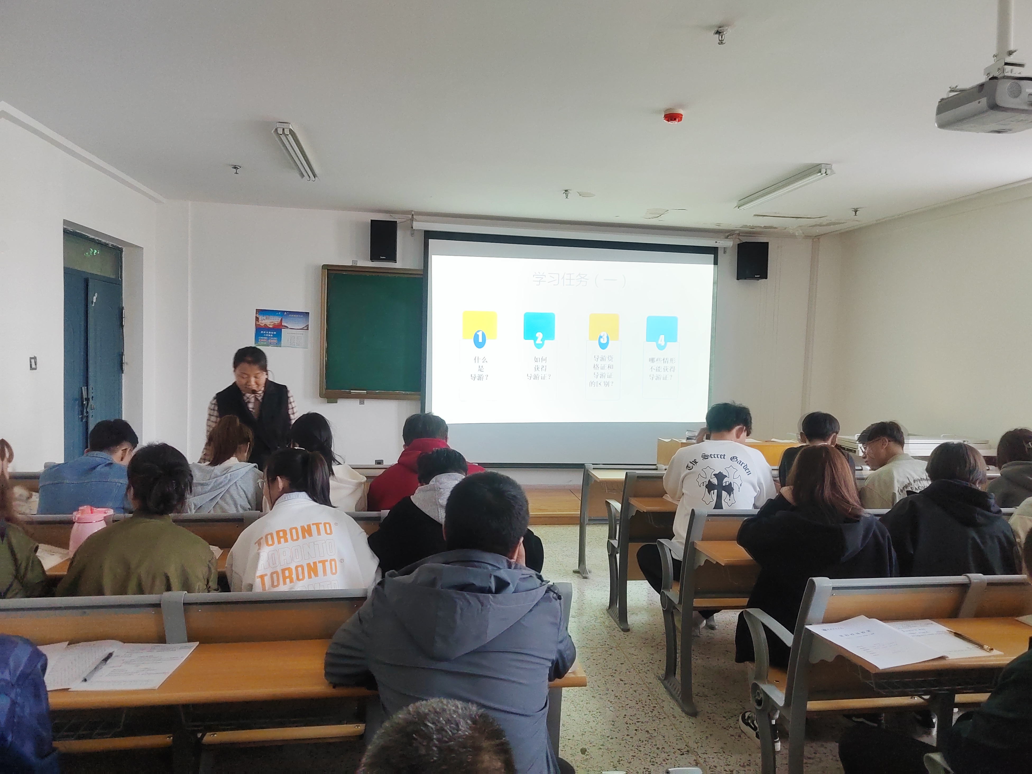 旅游教研室教師孔玉玲以《導(dǎo)游管理法律制度》為主題,帶領(lǐng)2022級(jí)旅游管理大專班學(xué)生為大家奉上了一堂精彩的研討課。整個(gè)過程在課程思政理念的指導(dǎo)下,以“某旅行社委派無證導(dǎo)游帶團(tuán)造成嚴(yán)重后果”引入課題,激發(fā)學(xué)生興趣,緊接著圍繞課程導(dǎo)入案例,采用講授法、討論法、任務(wù)驅(qū)動(dòng)法等多元化的教學(xué)方式,將課程教學(xué)內(nèi)容與思政元素?zé)o縫銜接,實(shí)現(xiàn)了顯性培育與隱性熏陶的完美融合,取得了良好的教學(xué)效果。