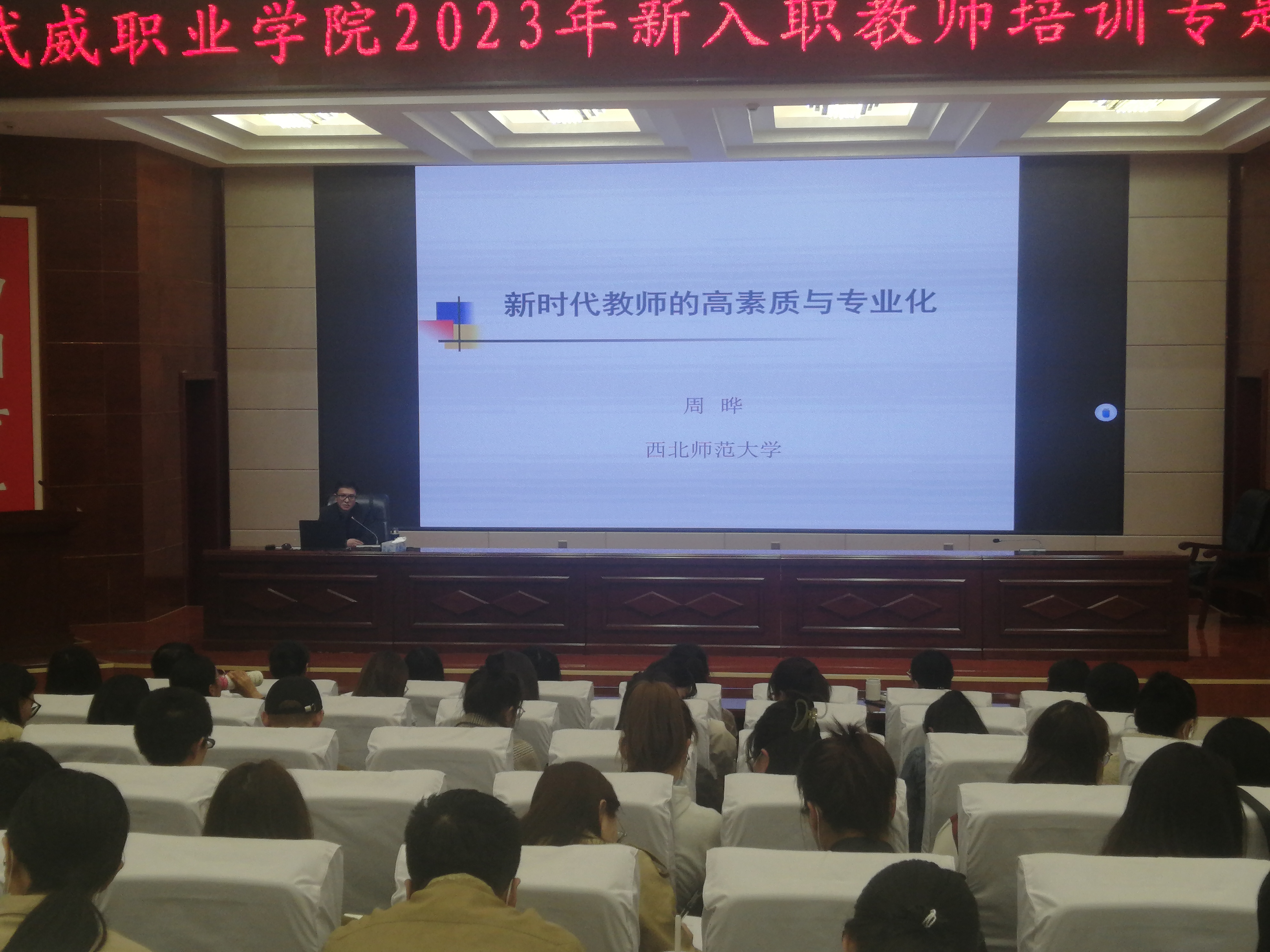 為貫徹落實(shí)中共中央 國務(wù)院關(guān)于全面深化新時(shí)代教師隊(duì)伍建設(shè)改革的意見,加強(qiáng)師德師風(fēng)建設(shè),提高新入職教師崗位適應(yīng)能力。4月1日,組織人事處特邀西北師范大學(xué)心理學(xué)院副教授、碩士生導(dǎo)師陳莉和教育科學(xué)學(xué)院教授、博士生導(dǎo)師周曄來我校為新入職教師舉行了專題講座。專題講座由組織人事處負(fù)責(zé)人任陶主持,學(xué)校110多名新入職教師聆聽了專題培訓(xùn)講座。