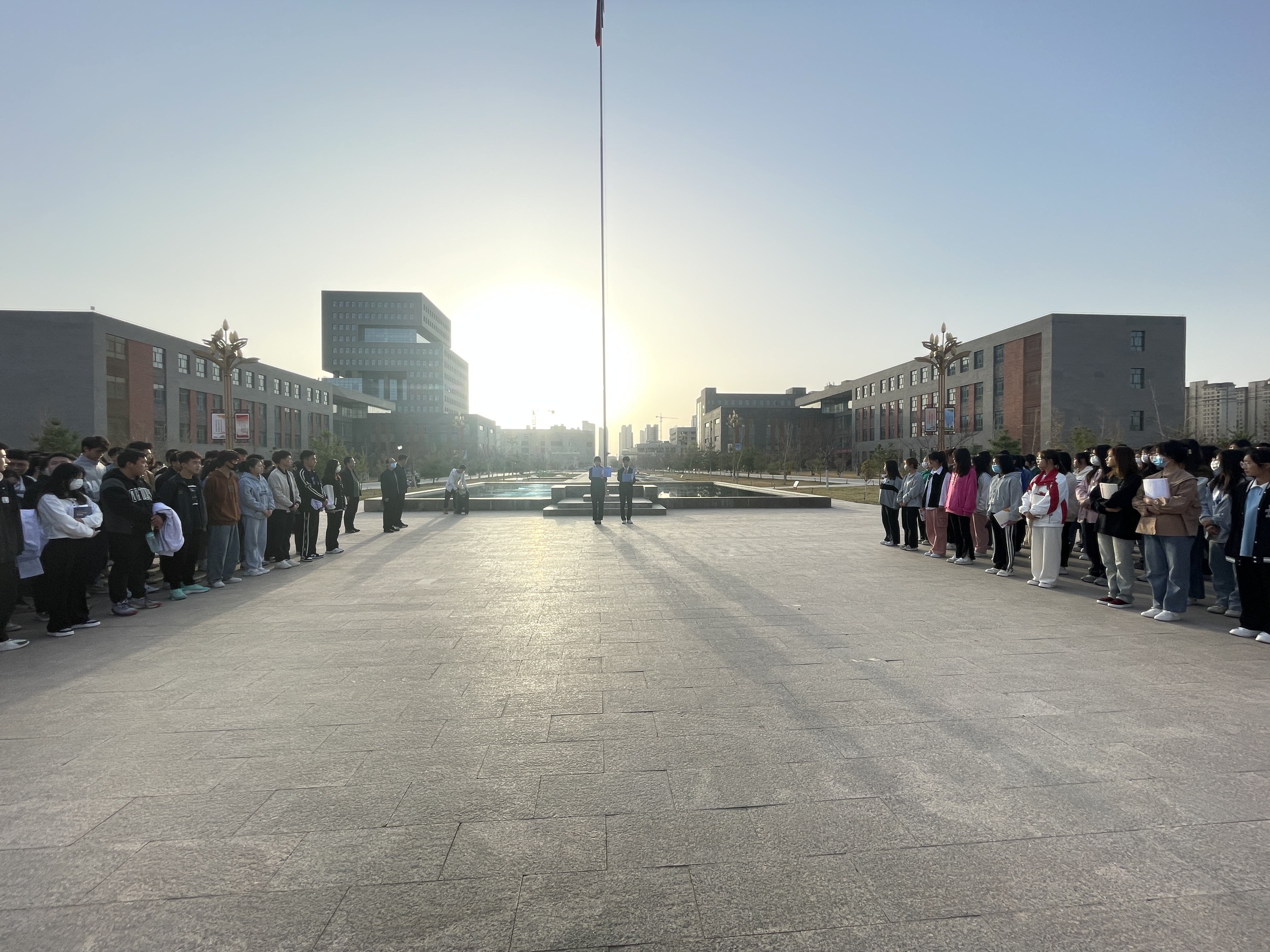 4月17日上午,醫(yī)學(xué)技術(shù)學(xué)院在學(xué)校圖書館東廣場舉行升國旗儀式,全體師生參加。
