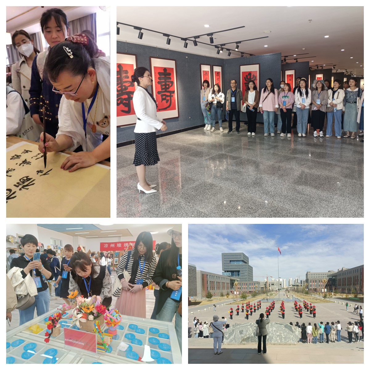 16日下午,培訓(xùn)班組織學(xué)員觀摩學(xué)校學(xué)前教育專業(yè)實訓(xùn)中心、紅色文化藝術(shù)館、傳統(tǒng)文化體驗中心、非遺體驗中心等場館。在講解老師的帶領(lǐng)下,學(xué)員們有感而發(fā),唱紅歌、彈鋼琴、練書法,使紅色教育理念在觀摩中得以升華,現(xiàn)場氣氛激情熱烈,學(xué)員們對學(xué)校的發(fā)展贊嘆不已,隨后,全體學(xué)員觀看涼州攻鼓子表演,并合影留念。