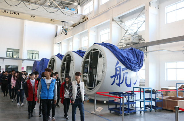 在榮寶照明,同學們了解了LED照明、LED路燈等太陽能能源開發(fā)及節(jié)能照明系列產(chǎn)品,參觀了LED封裝車間、路燈制造車間、涂裝車間、總裝車間;在航天萬源,工作人員帶領(lǐng)同學們參觀了風力發(fā)電機的輪轂生產(chǎn)線、主軸生產(chǎn)線、電機生產(chǎn)線并介紹了風力發(fā)電機的原理,風力發(fā)電機各部件生產(chǎn)流程;在甘肅建投,同學們參觀了風電設(shè)備、光伏產(chǎn)品、治沙設(shè)備的生產(chǎn)制造車間及相關(guān)工藝流程。