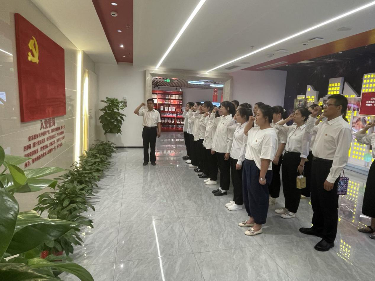 在鮮紅的黨旗下,大家高舉右拳,新發(fā)展黨員入黨宣誓,老黨員重溫入黨誓詞。