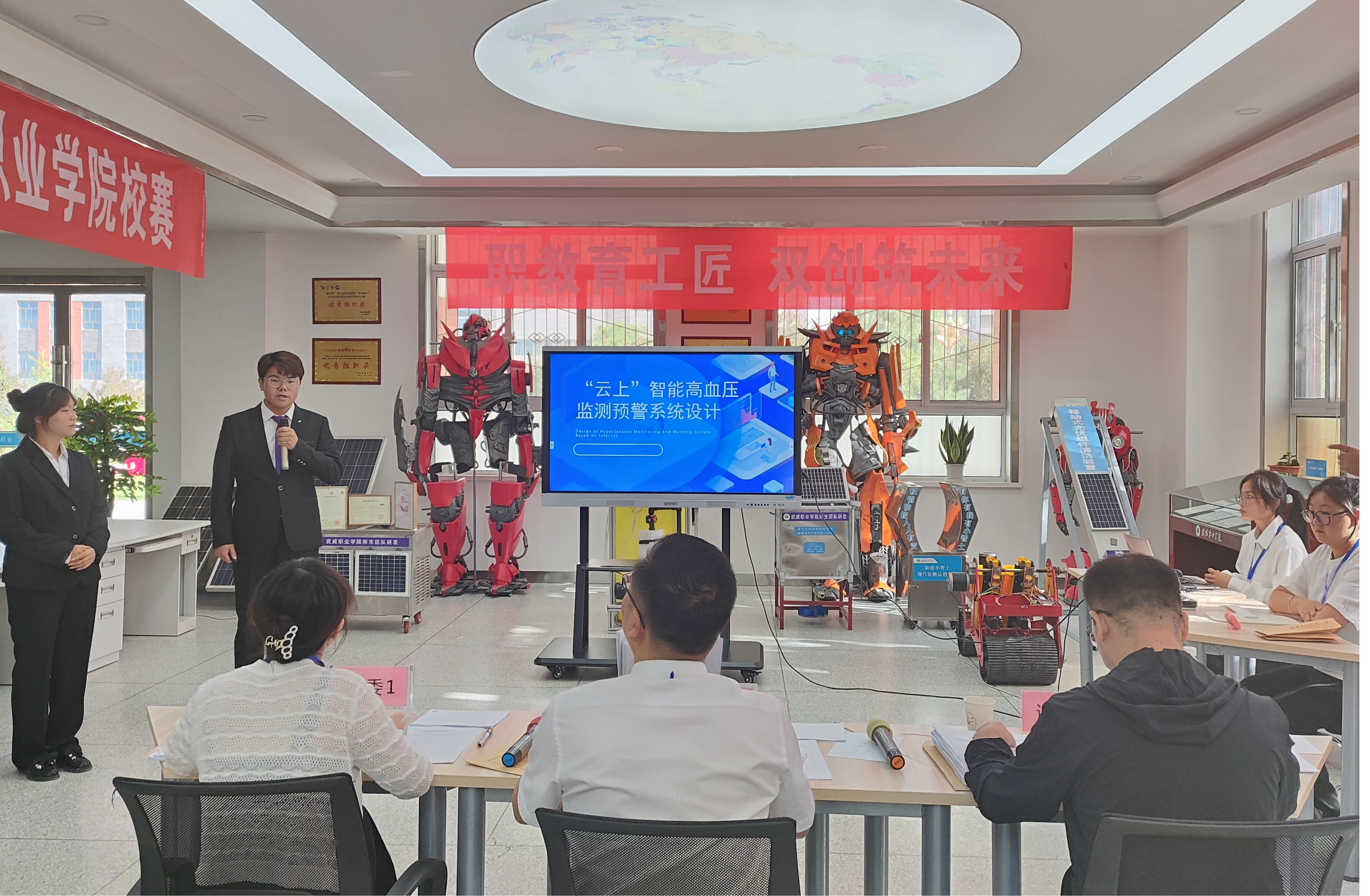 9月3日上午,甘肅省第五屆黃炎培職業(yè)教育創(chuàng)新創(chuàng)業(yè)大賽武威職業(yè)學(xué)院校賽在篤行樓一樓創(chuàng)新創(chuàng)業(yè)中心成功舉辦。