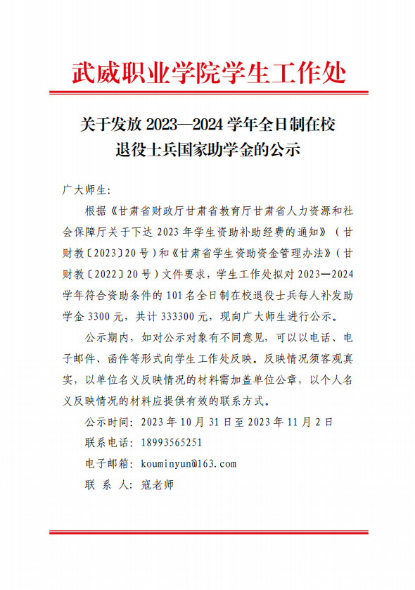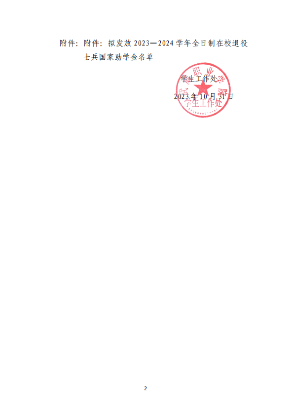 關(guān)于擬發(fā)放2023—2024學(xué)年全日制在校退役士兵國(guó)家助學(xué)金的公示