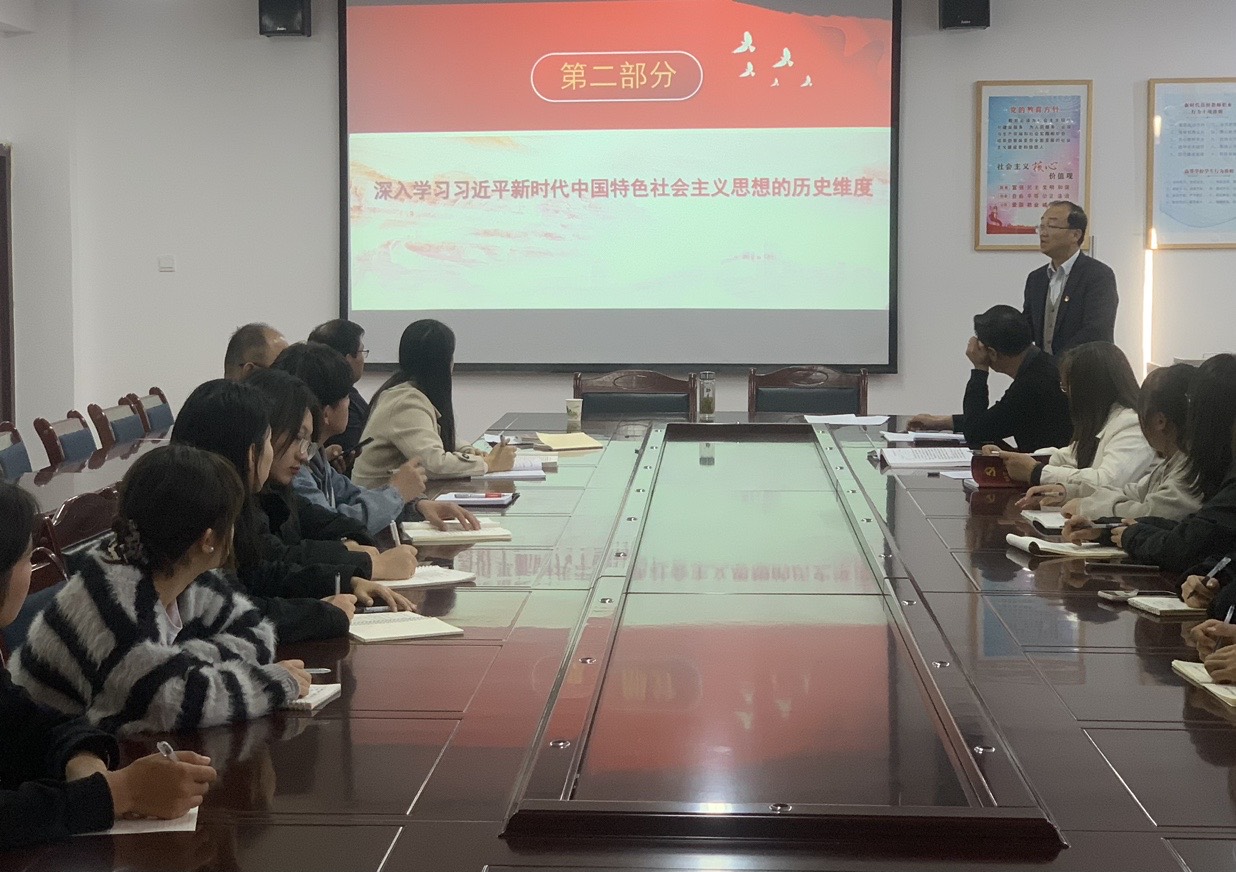 ? ? ? 為深入推進(jìn)學(xué)習(xí)貫徹習(xí)近平新時(shí)代中國(guó)特色社會(huì)主義思想主題教育走深走實(shí),不斷增強(qiáng)對(duì)黨的創(chuàng)新理論的政治認(rèn)同、思想認(rèn)同、情感認(rèn)同。10月20日,醫(yī)學(xué)技術(shù)學(xué)院黨總支書記黃文源以《深入學(xué)習(xí)習(xí)近平新時(shí)代中國(guó)特色社會(huì)主義思想的三個(gè)維度》為主題講授專題黨課。
