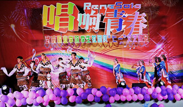 為紀(jì)念建黨95周年,6月22日晚,武威職業(yè)學(xué)院學(xué)生社團(tuán)在學(xué)院禮堂舉辦了慶“七一”文藝晚會。學(xué)院副院長潘玉華,學(xué)生工作處、招生就業(yè)處、工會、院團(tuán)委負(fù)責(zé)人和800多名師生一同觀看了演出。
