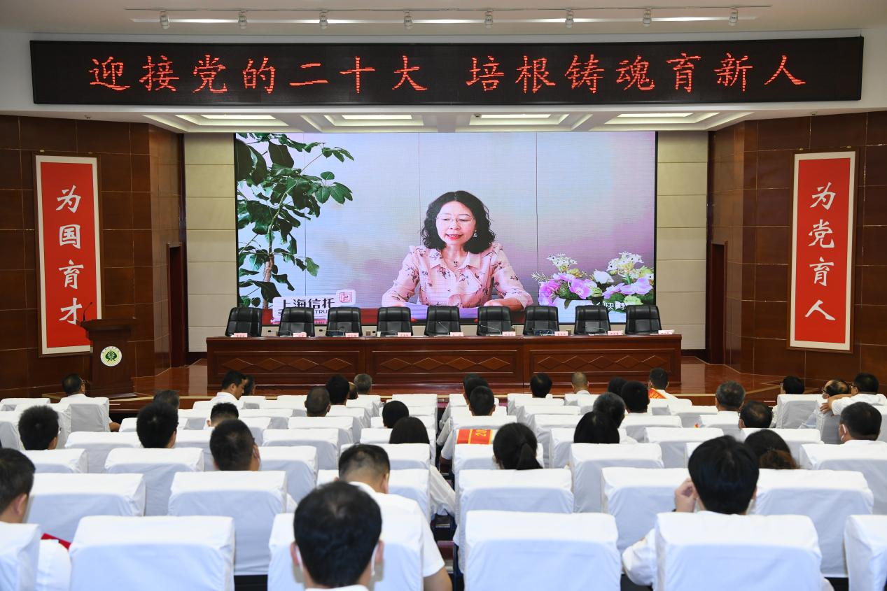 參會領(lǐng)導(dǎo)向獲得2022年“上善·低碳新能源獎教金”的獲獎人員頒發(fā)了證書?!吧仙啤さ吞夹履茉椽劷探稹笔巧虾H信托有限公司為獎勵學(xué)校教師在推動綠色能源領(lǐng)域職業(yè)教育中作出的貢獻(xiàn),在學(xué)校設(shè)立的捐贈資金。大會現(xiàn)場播放了上海國際信托有限公司張曉軍副總經(jīng)理講話視頻。