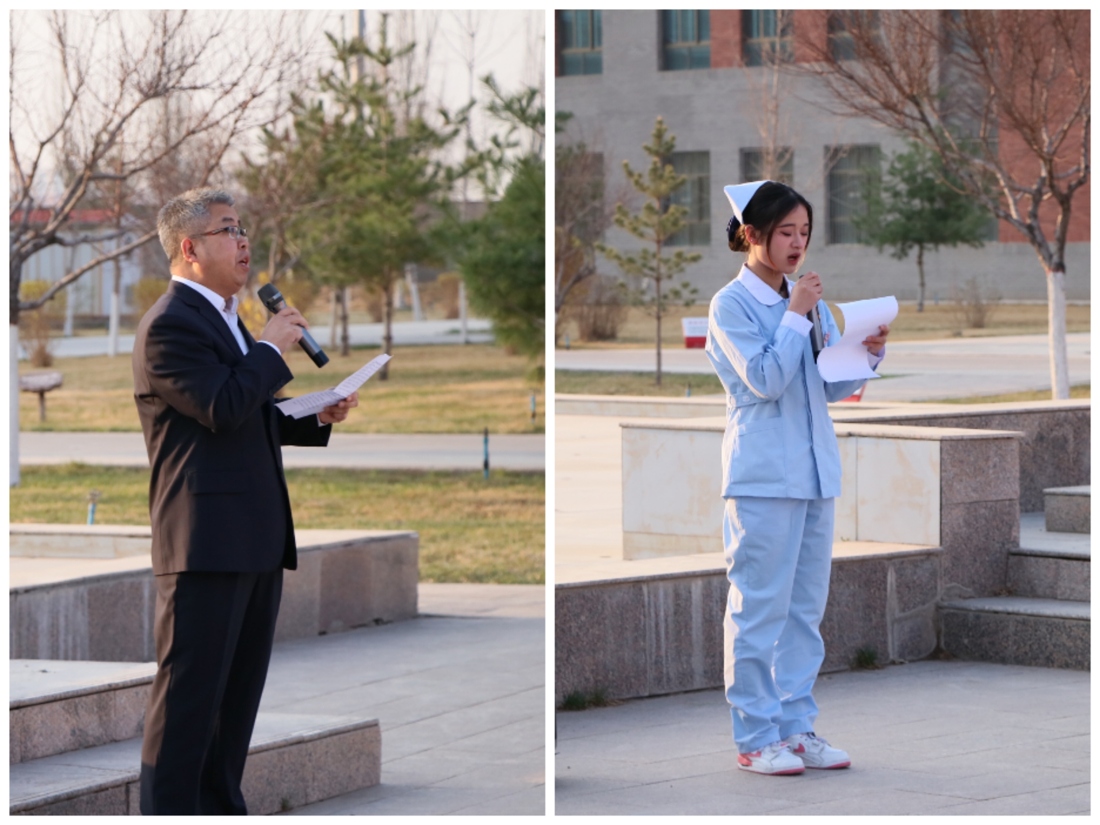 武威職業(yè)學(xué)院張建輝在講話中表示,清明節(jié)是我國(guó)傳統(tǒng)的祭祖節(jié)日,也是緬懷先烈、感恩先人的重要日子,全體師生要銘記先烈們的英勇事跡,傳承他們大無(wú)畏精神,感恩他們的無(wú)私付出。張建輝強(qiáng)調(diào),作為武威職業(yè)學(xué)院護(hù)理專業(yè)的學(xué)生,同學(xué)們更應(yīng)當(dāng)懂得感恩,感恩父母的養(yǎng)育之恩,老師的教誨之恩,感恩學(xué)校的培養(yǎng)之恩,感恩國(guó)家的大愛(ài)之恩,并且將感恩內(nèi)化于心,外化于行、知行合一,用自己的實(shí)際行動(dòng)為他人和社會(huì)創(chuàng)造價(jià)值。