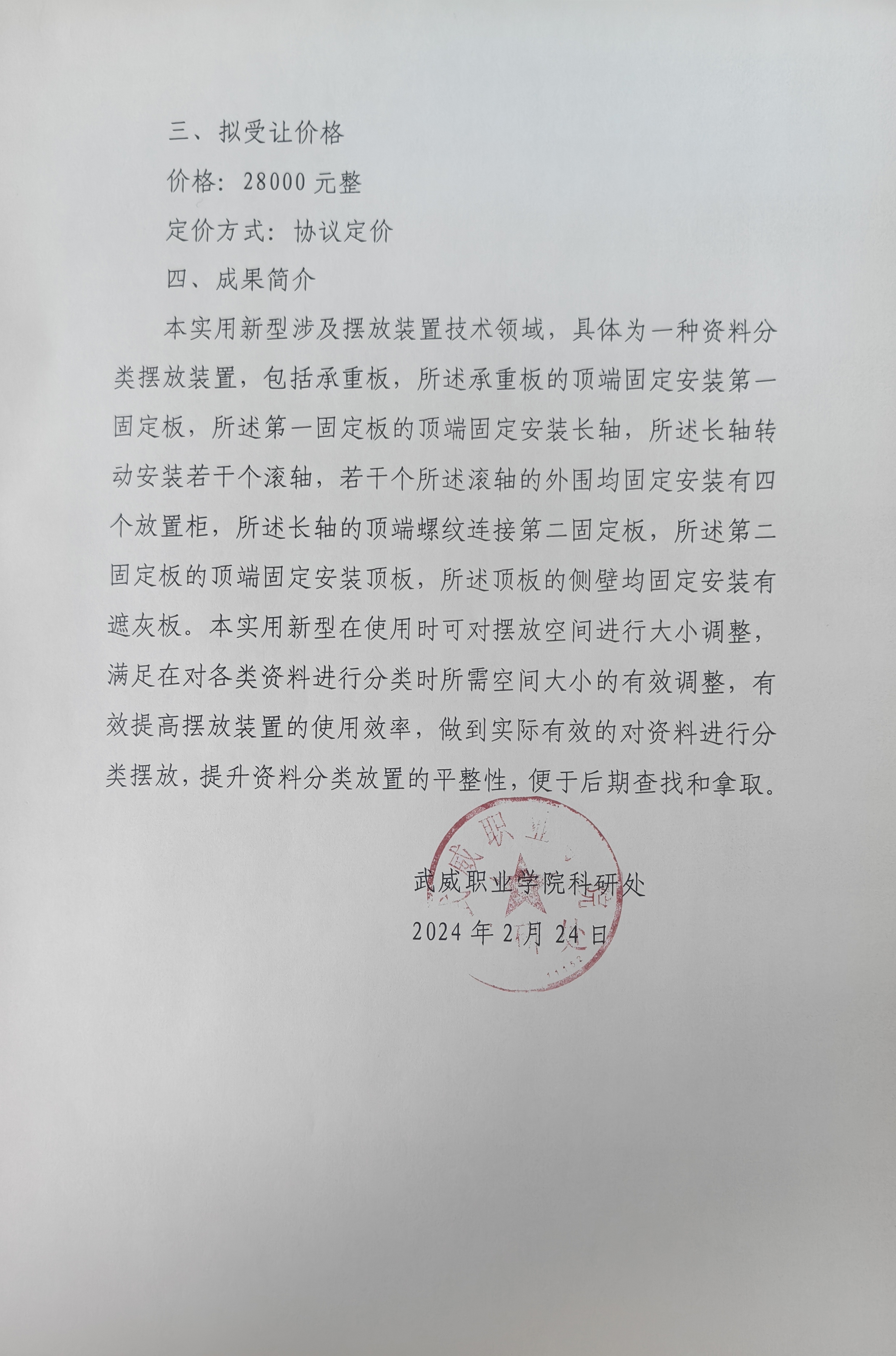 關(guān)于《一種機械自動化加工物料定量送給裝置》科…