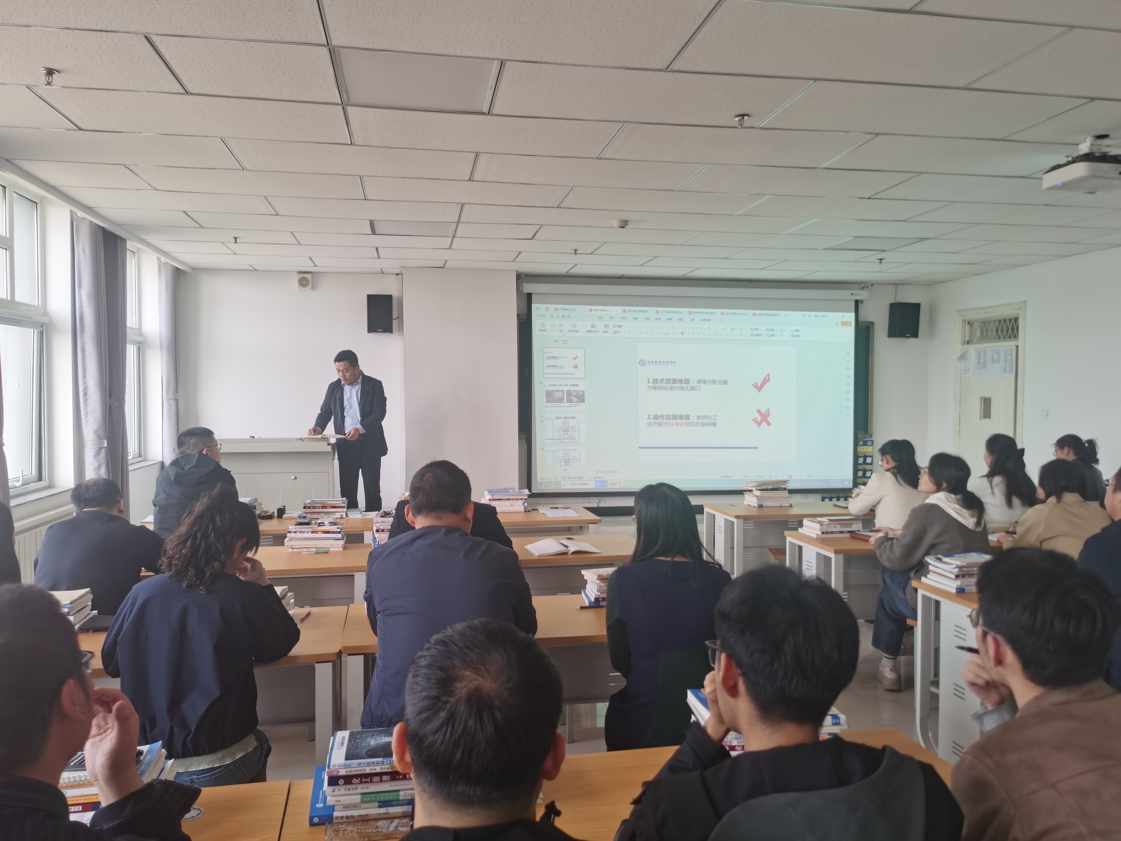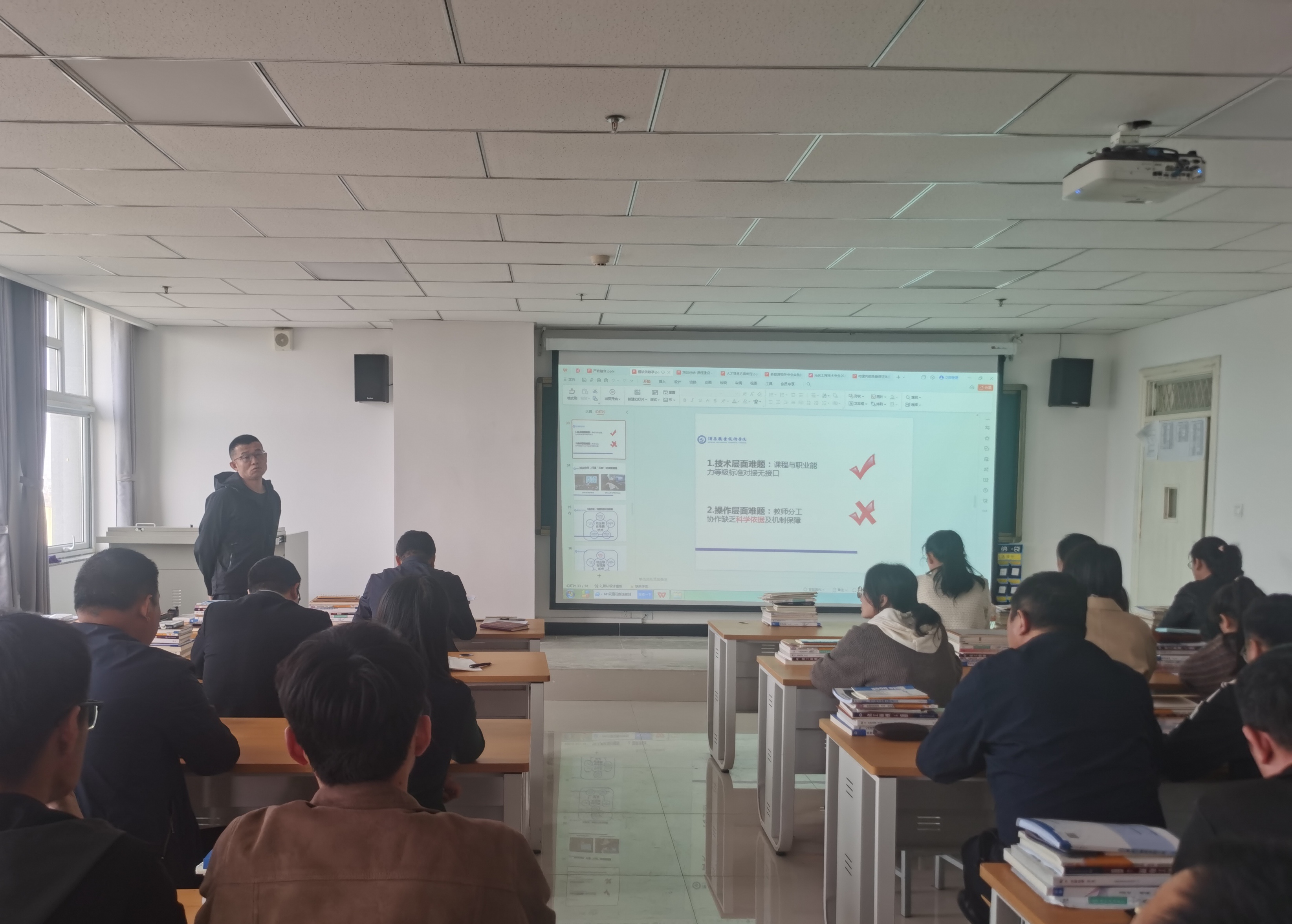 4月12日下午,中科低碳新能源技術(shù)學(xué)院在能源科技樓612教室召開光伏工程技術(shù)專業(yè)骨干教師國培項目培訓(xùn)匯報暨國家級教師創(chuàng)新團隊高質(zhì)量發(fā)展研討交流會,光伏工程技術(shù)國家級教師創(chuàng)新團隊成員及專業(yè)教師共24人參加會議,會議由學(xué)院副院長、國家級教師創(chuàng)新團隊負(fù)責(zé)人黃述杰主持。