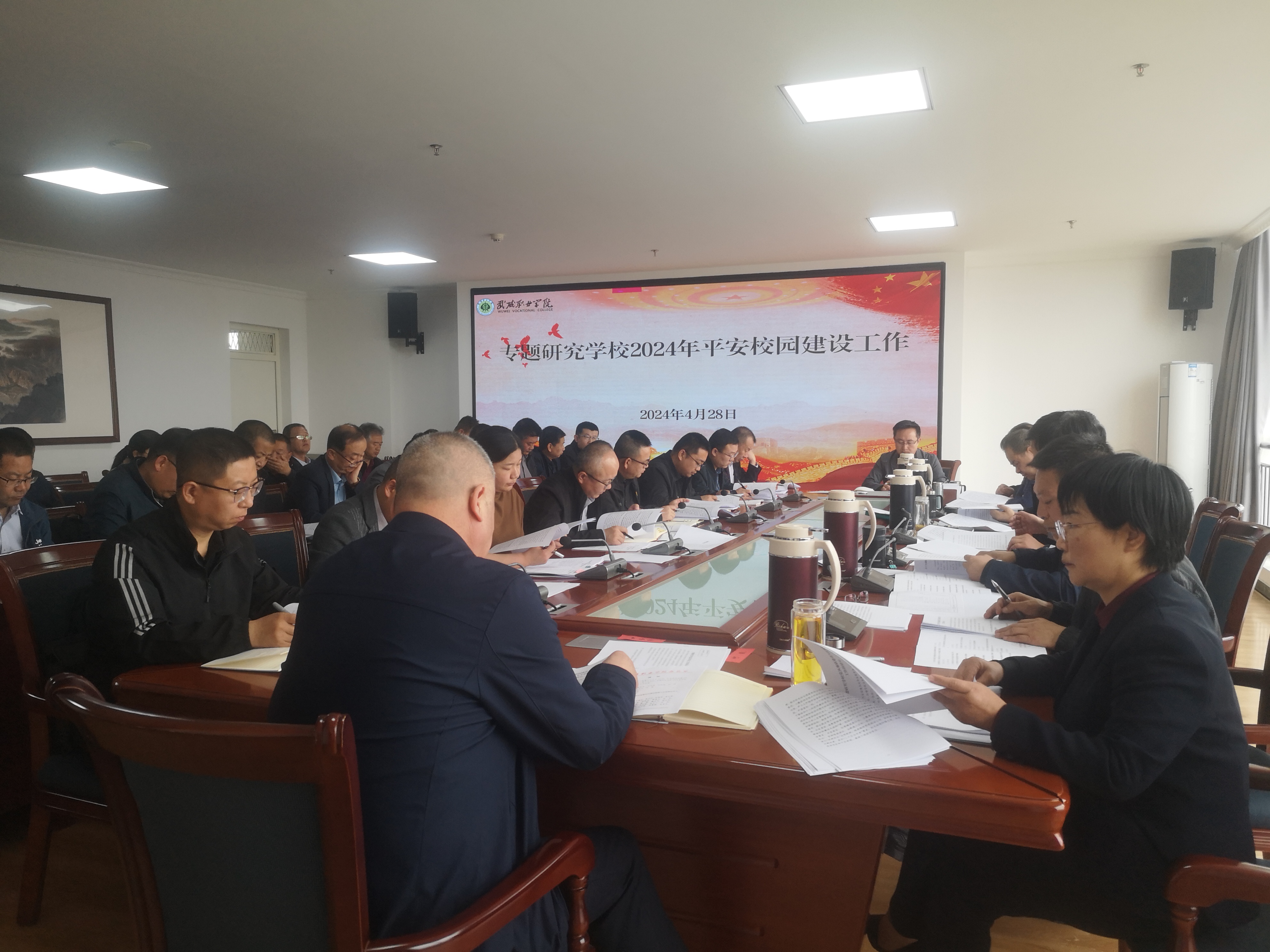 4月28日上午,學校黨委召開2024年平安校園建設工作專題會議,會議聽取了學校2023年平安校園建設工作情況報告,對2024年平安校園建設作出了安排部署。會議由學校黨委書記王宏主持。學校領導班子成員,各部門、二級學院主要負責人參加會議。
