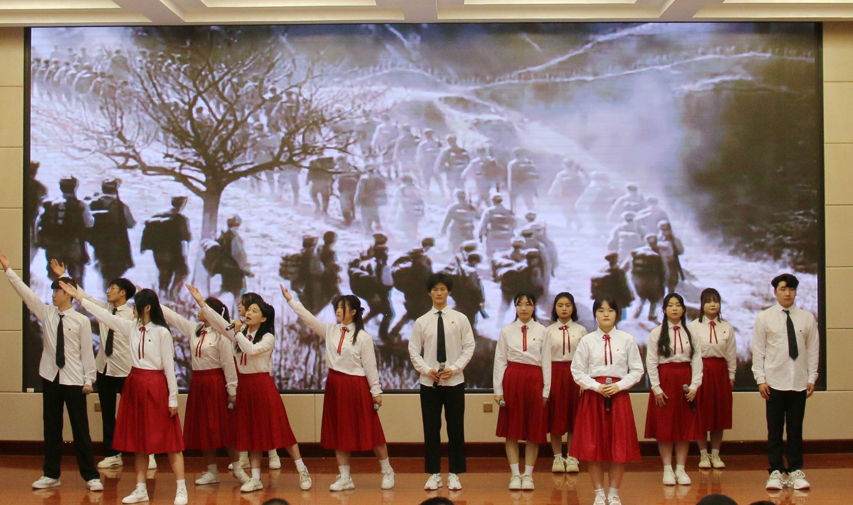 誦讀之聲不絕于耳,誦出青年學子對新時代的期許;強國之音擲地有聲,頌出青年學子的使命感與責任感。相信武職學子必將以青春熱忱予拼搏以力量,以家國情懷賦前進以方向,永葆青春底色,以最昂揚的姿態(tài)為祖國獻禮,以奮斗之我、追夢之我,全力為學校高質量發(fā)展注入青春動能,在中國式現(xiàn)代化建設中挺膺擔當!