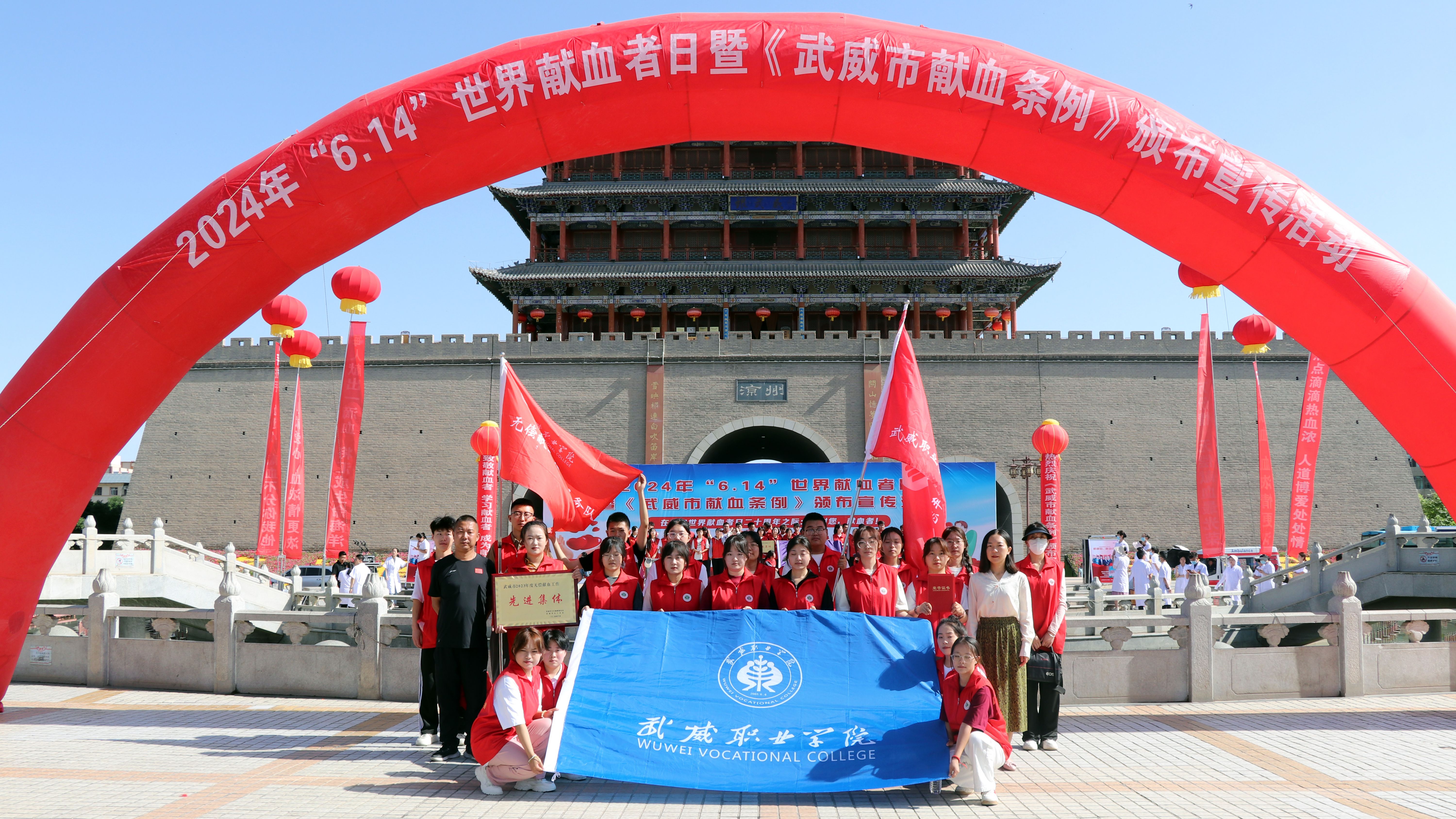 6月14日上午,我市2024年“6·14”世界獻(xiàn)血者日暨《武威市獻(xiàn)血條例》頒布宣傳活動在南城門廣場舉辦。市人大常委會副主任劉光美宣讀《條例》頒布公告,并為全市2023年度無償獻(xiàn)血工作先進(jìn)集體、應(yīng)急獻(xiàn)血先進(jìn)集體和先進(jìn)個人頒發(fā)獎牌和榮譽(yù)證書。學(xué)校被評為武威市2023年度無償獻(xiàn)血工作先進(jìn)集體,1名教師被評為先進(jìn)個人。