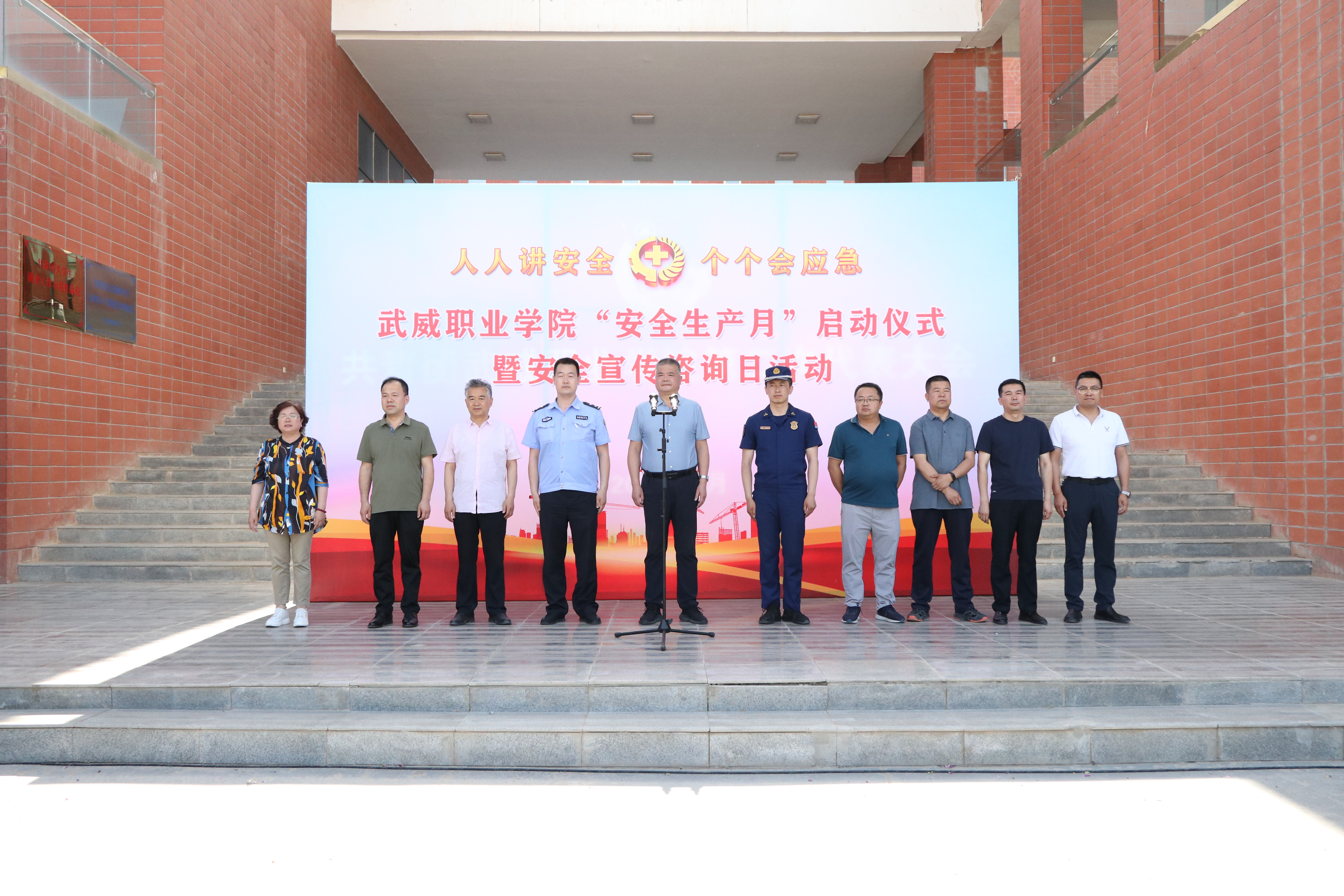 啟動儀式上,學(xué)校黨委委員、副校長王守云作了動員講話并宣布武威職業(yè)學(xué)院“安全生產(chǎn)月”活動正式開始。王守云強調(diào),要把握總體思路,深入學(xué)習(xí)宣傳貫徹習(xí)近平總書記關(guān)于安全生產(chǎn)的重要論述,不斷增強安全法治意識,落實安全主體責(zé)任,廣泛開展內(nèi)容新穎、形式多樣的安全宣傳活動,營造良好的安全生產(chǎn)氛圍,使全校師生自覺增強自我保護意識,消除安全隱患。