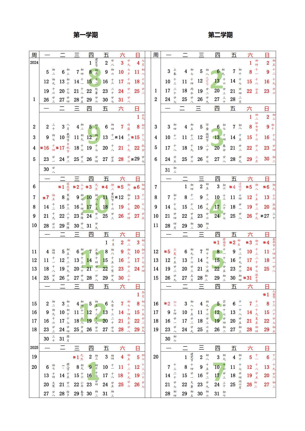 2024-2025學(xué)年校歷