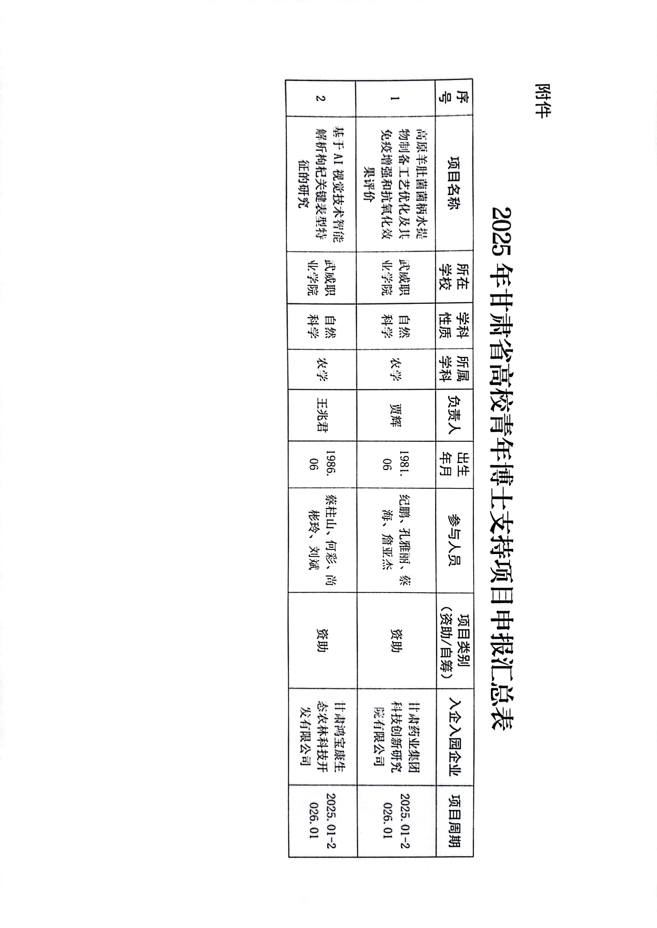 武威職業(yè)學(xué)院關(guān)于2025年度青年博士支持項目評審結(jié)果的公示