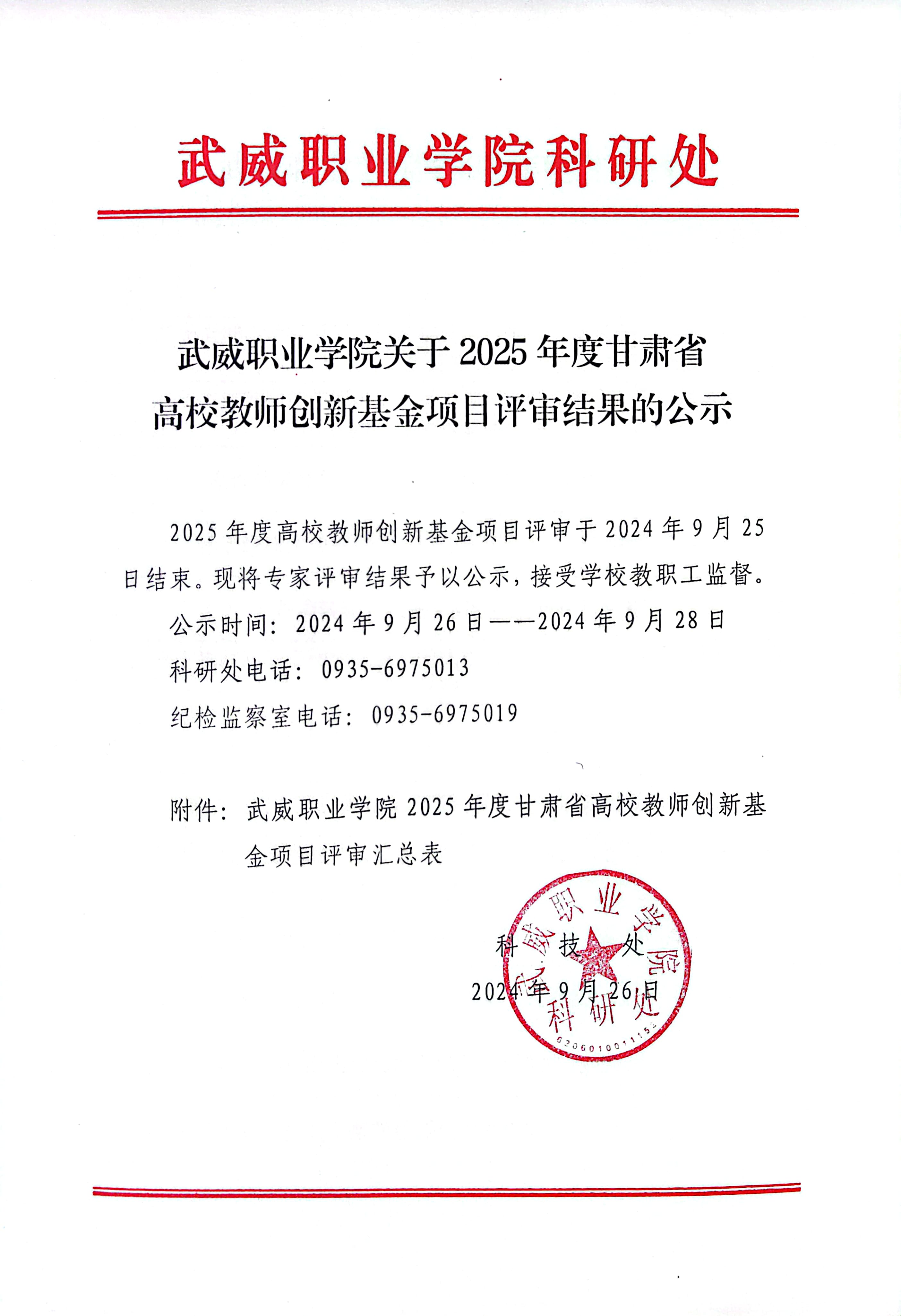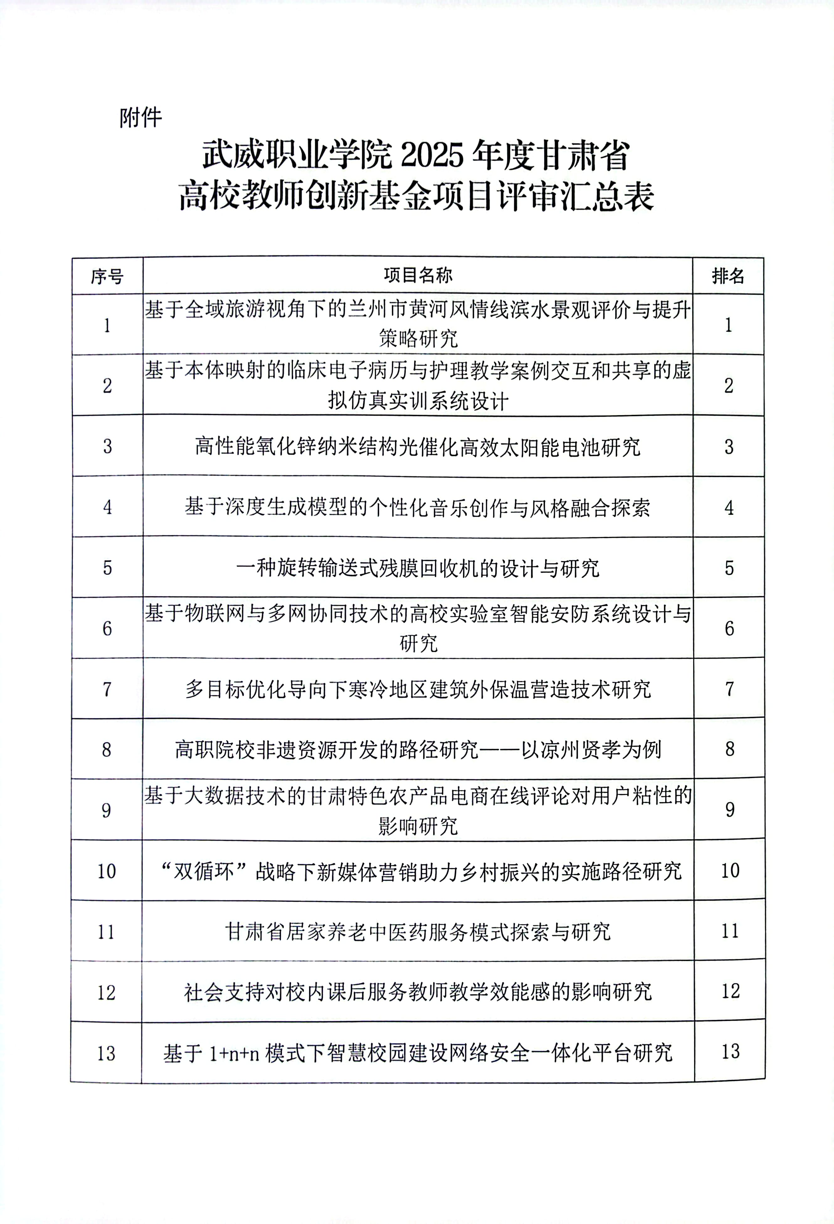 武威職業(yè)學(xué)院關(guān)于2025年度甘肅省高校教師創(chuàng)新基金項(xiàng)目評審結(jié)果的公示