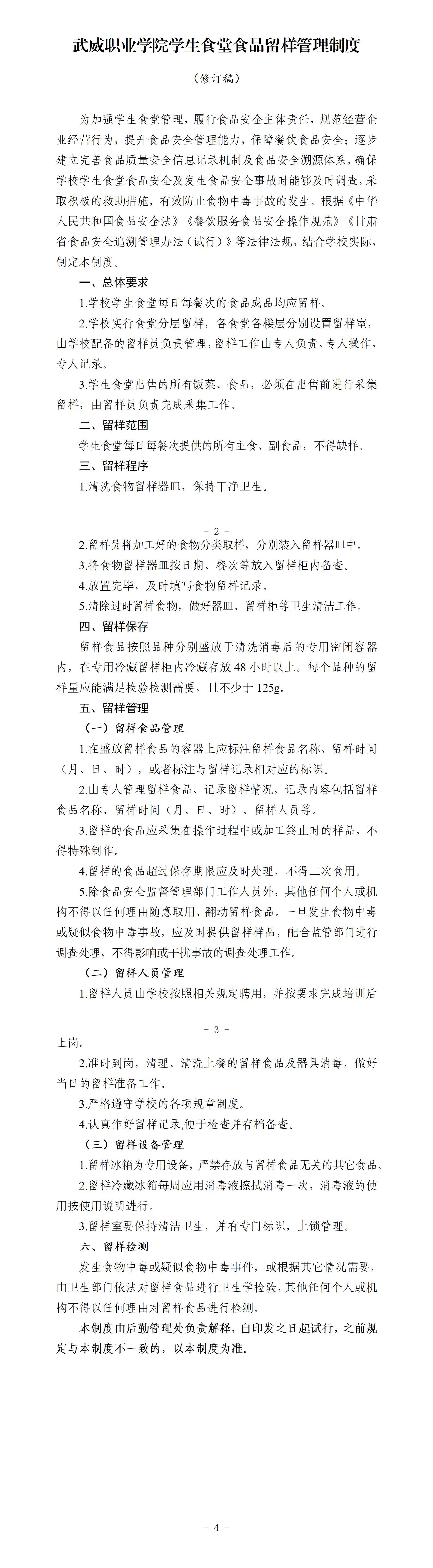 武威職業(yè)學院學生食堂食品留樣管理制度