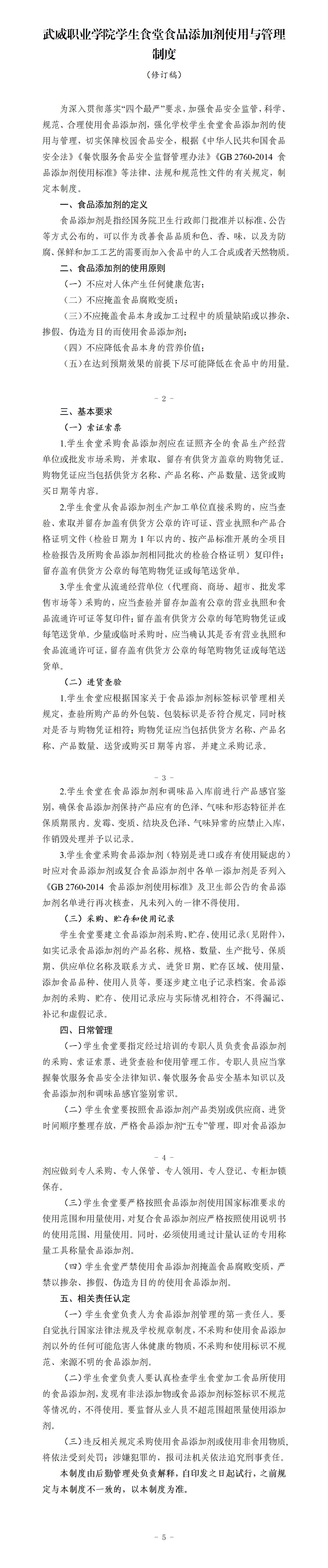 武威職業(yè)學院學生食堂食品添加劑使用與管理制度