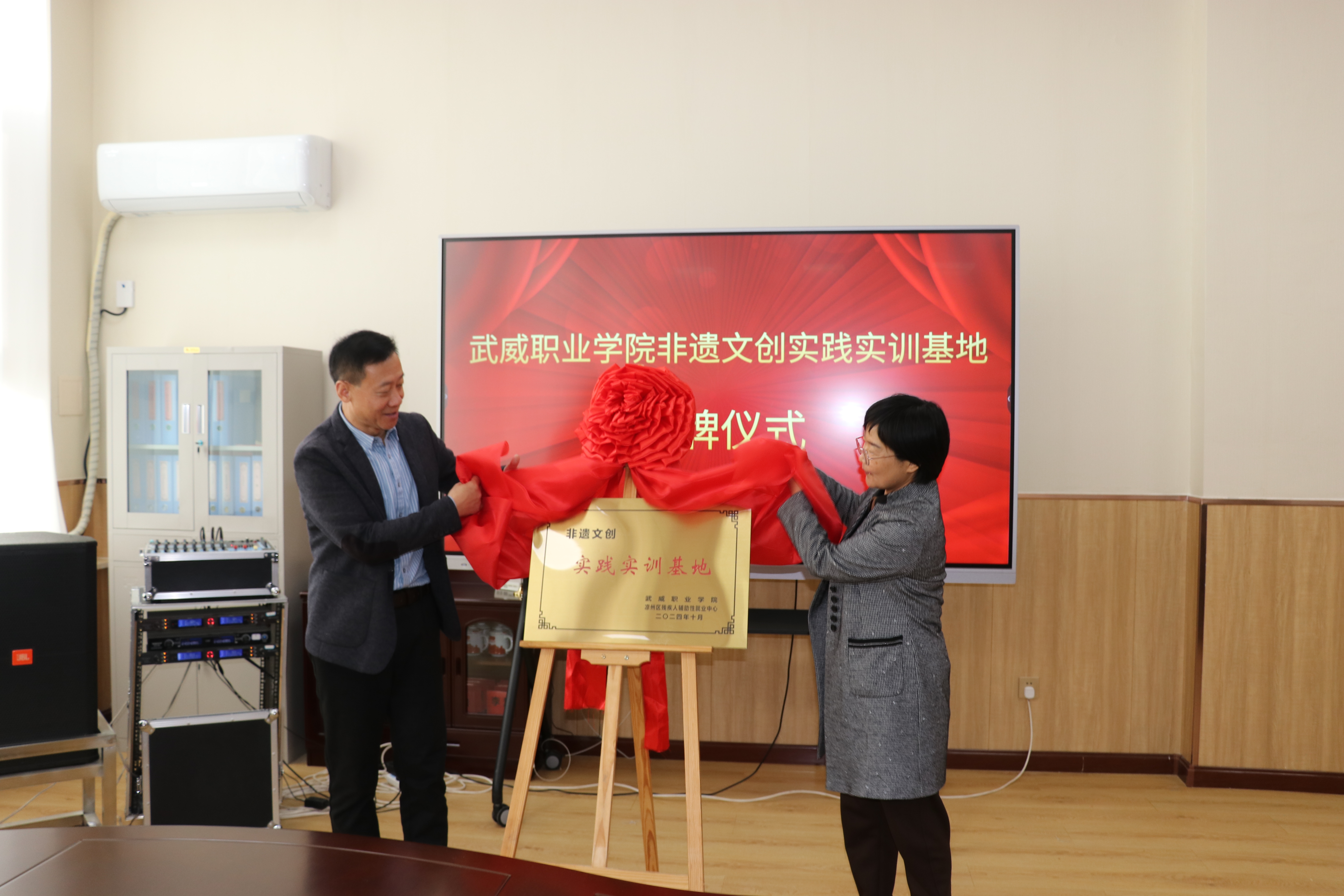 會上,武威市殘疾人聯(lián)合會副理事長柯長文,武威職業(yè)學(xué)院黨委委員、副校長何毅為“非遺文創(chuàng)實(shí)訓(xùn)實(shí)踐基地”揭牌。