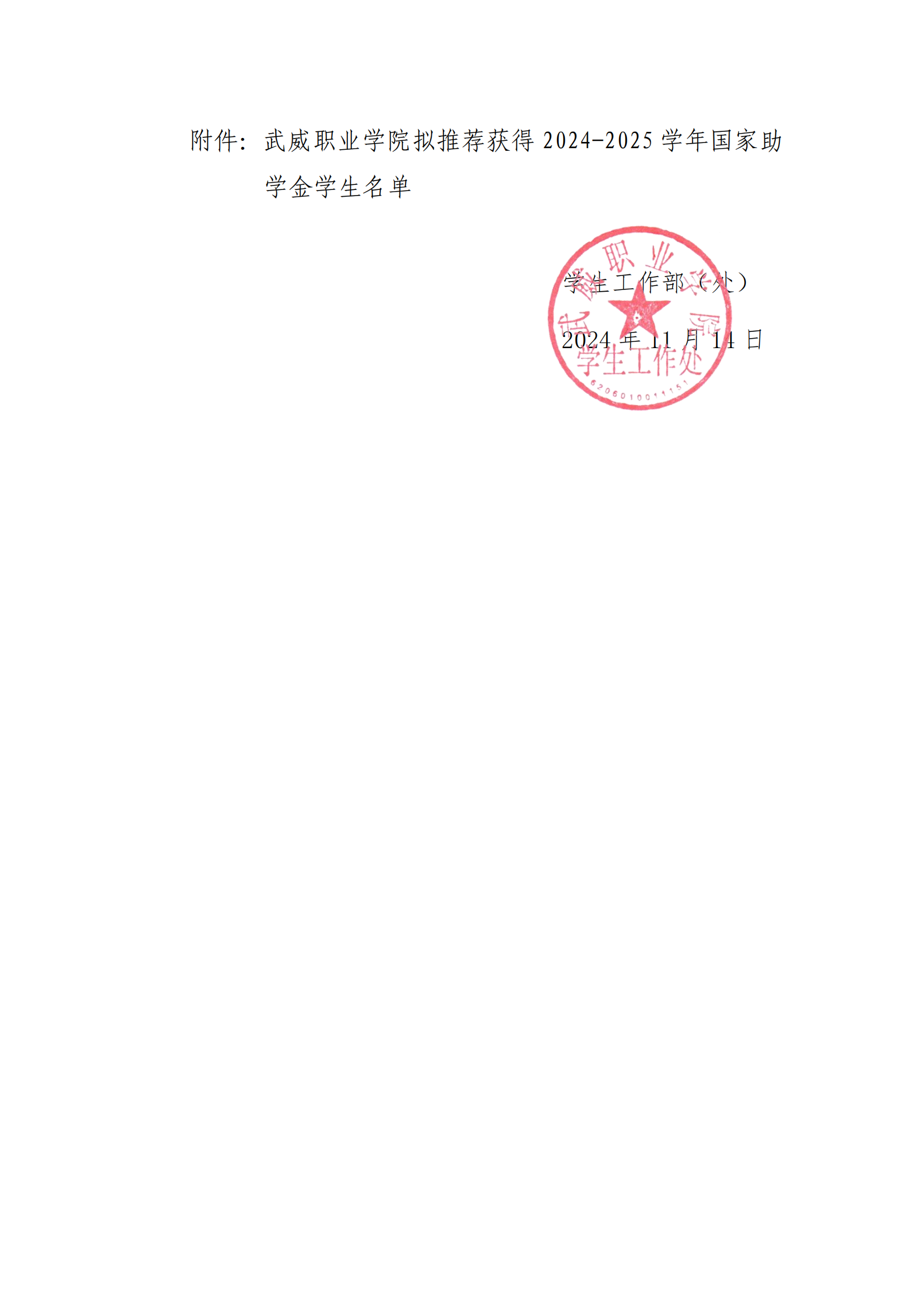 武威職業(yè)學(xué)院關(guān)于2024-2025學(xué)年國(guó)家助學(xué)金評(píng)選結(jié)果的公示