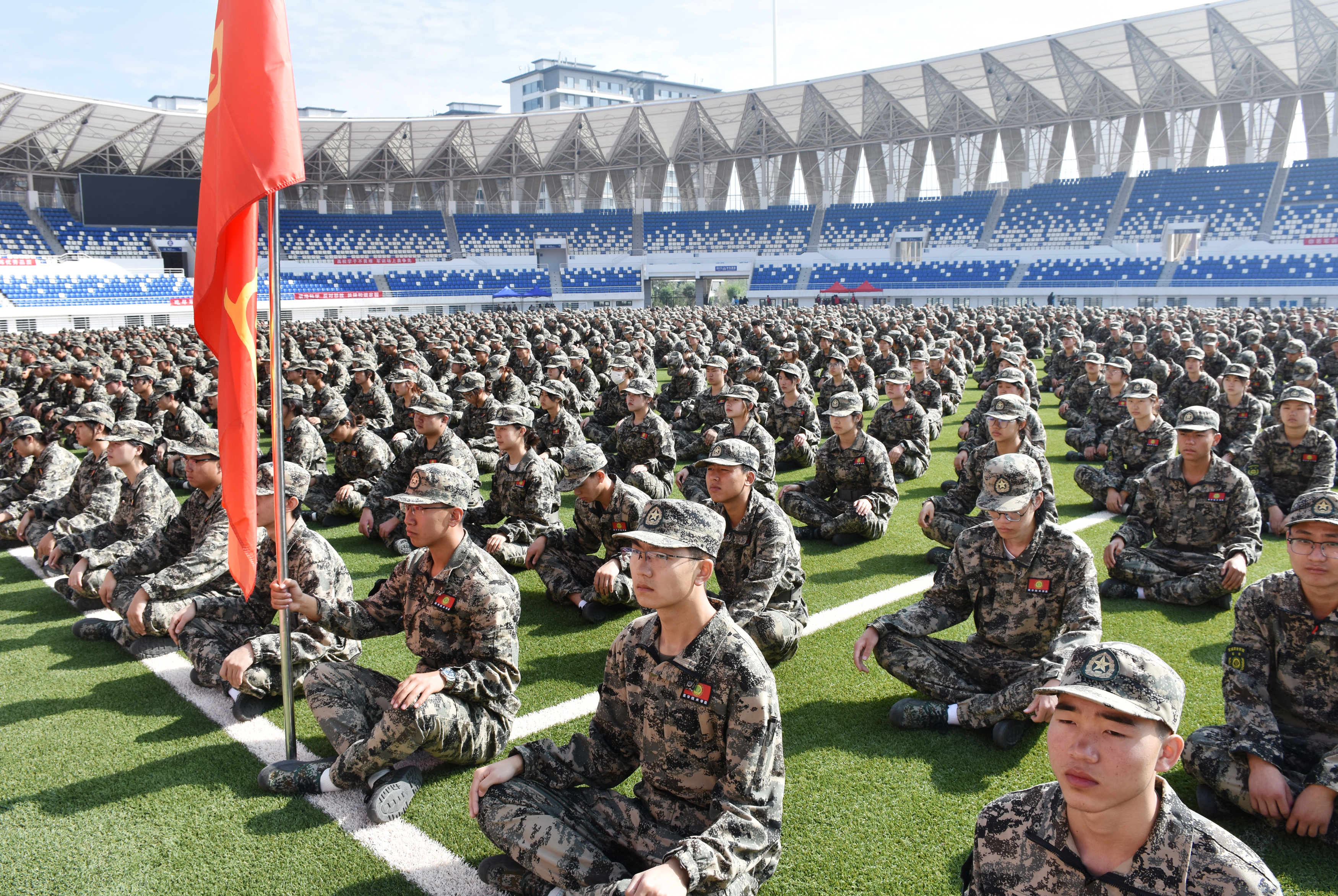 最后,王宏對新生軍訓工作提出要求,并代表學校向軍訓團授旗。