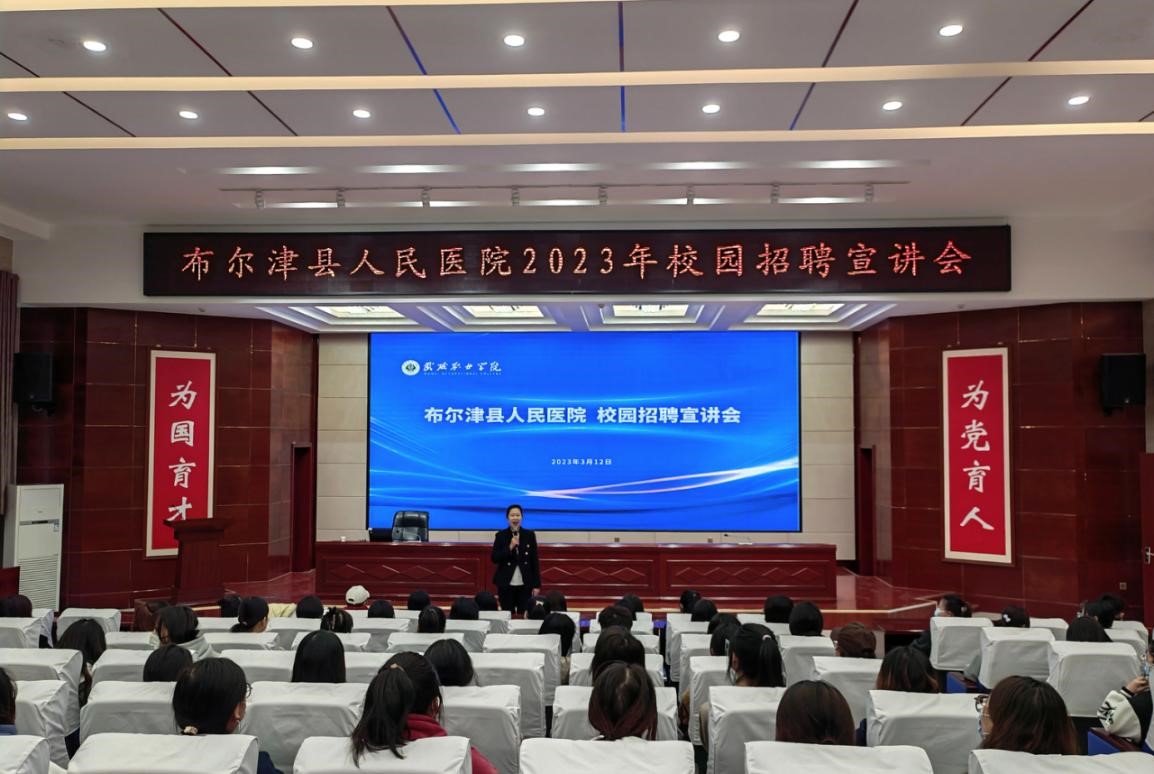 李娟介紹了布爾津縣人民醫(yī)院的基本情況、發(fā)展思路和人才需求,表達了對此次合作的美好祝愿。王守云對李娟一行來?,F(xiàn)場簽約表示了歡迎,也對布爾津縣人民醫(yī)院近年的發(fā)展成果給予了高度評價。雙方表示,希望今后在學生實習實訓、人才培養(yǎng)質量、畢業(yè)生實習就業(yè)、教師職業(yè)能力提升等方面加強合作,拓寬合作范圍。簽約儀式結束后,布爾津縣人民醫(yī)院在學生發(fā)展中心舉行了校園招聘宣講活動,約200名師生參加,部分學生現(xiàn)場達成實習就業(yè)意向。