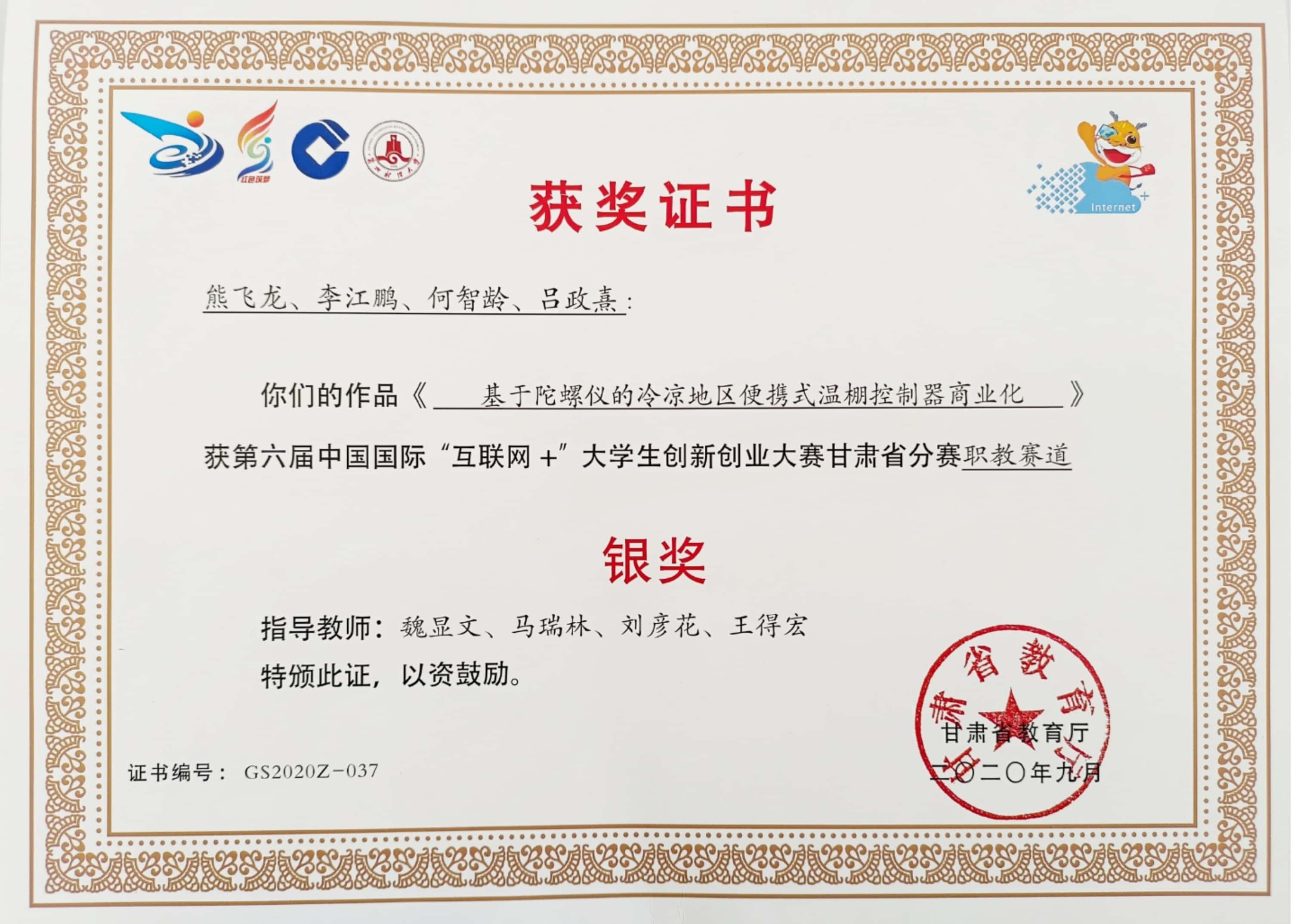 學(xué)生獲第六屆中國國際“互聯(lián)網(wǎng)+”大學(xué)生創(chuàng)新創(chuàng)業(yè)大賽甘肅省分賽銀獎