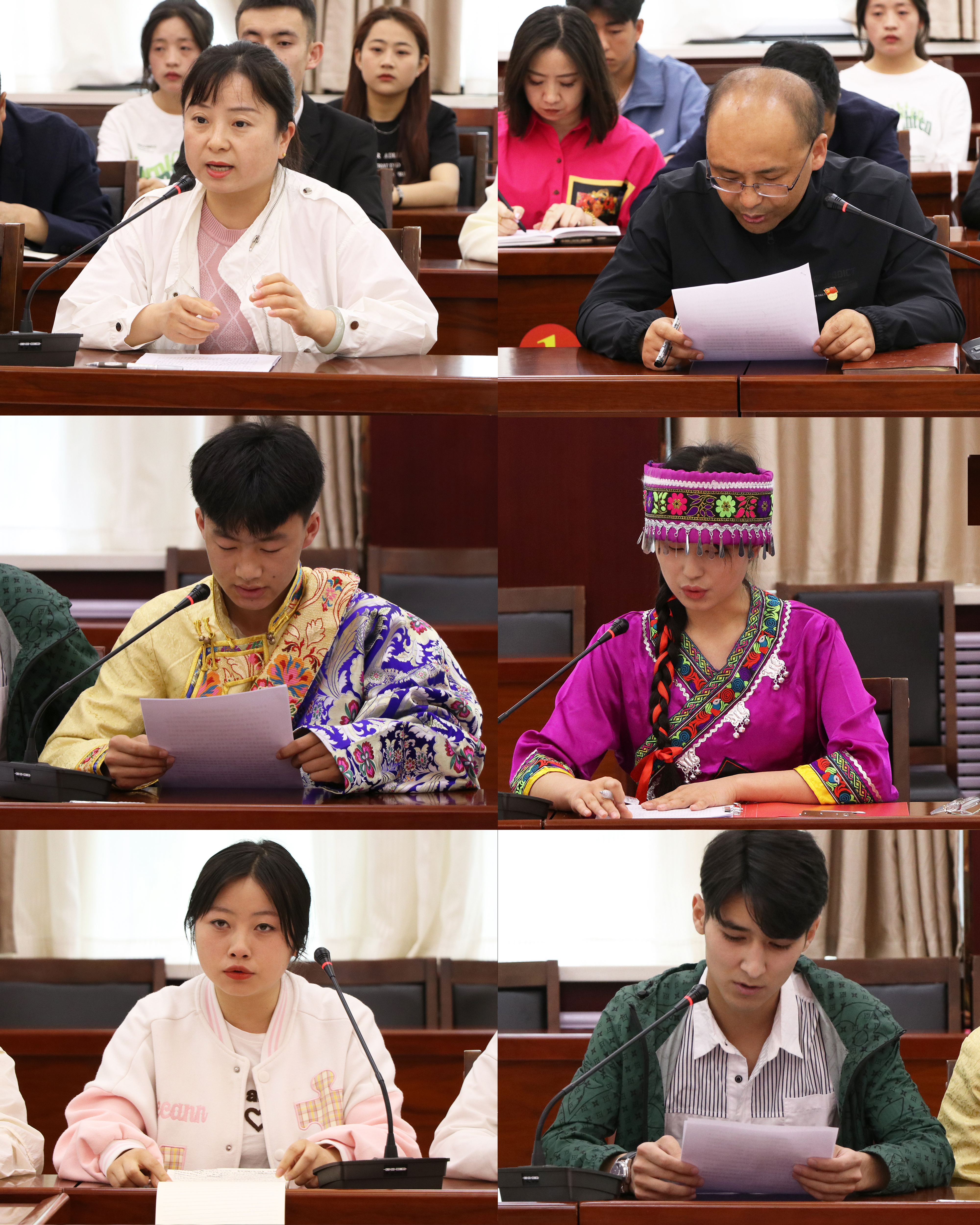 來自漢族、藏族、回族、維吾爾族、土族、苗族、東鄉(xiāng)族、保安族、裕固族、滿族等民族的10名師生代表在座談會(huì)上進(jìn)行了交流發(fā)言,分別介紹了本民族的風(fēng)土人情、傳統(tǒng)文化、生活習(xí)慣、成長經(jīng)歷和在學(xué)校的學(xué)習(xí)工作生活情況。大家紛紛表示,中華民族一家親,要始終牢記黨和國家的關(guān)心關(guān)懷,鑄牢中華民族共同體意識(shí),珍惜大學(xué)時(shí)光,扎實(shí)學(xué)好知識(shí),練就過硬本領(lǐng),將來積極投身家鄉(xiāng)建設(shè),把對(duì)黨和國家的感恩之情轉(zhuǎn)化為努力報(bào)國之行,為促進(jìn)各民族共同團(tuán)結(jié)進(jìn)步,共同繁榮發(fā)展。