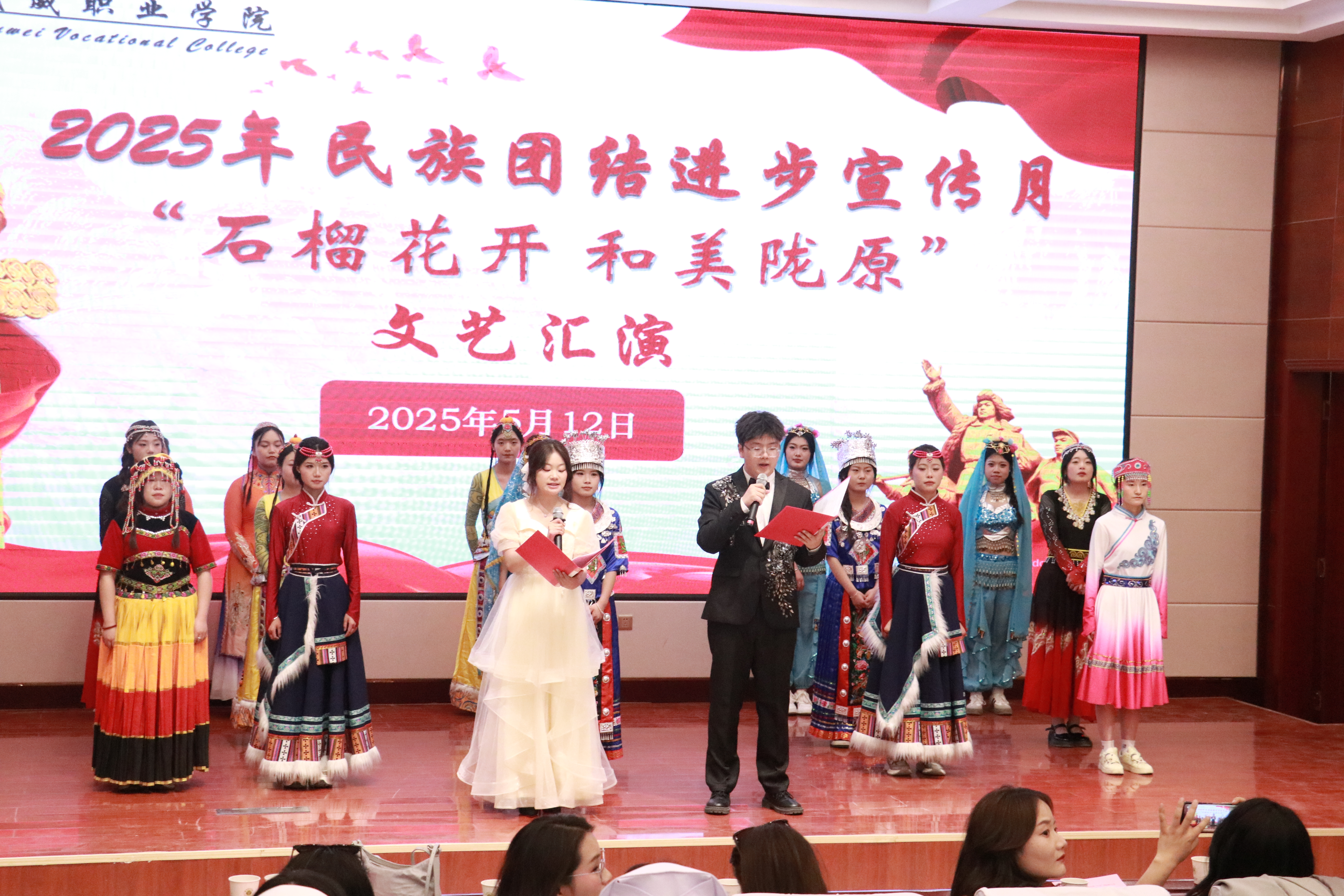 為深入貫徹落實黨的二十大精神,深化民族團結進步教育,鑄牢中華民族共同體意識,5月12日,護理學院在學校菁英廳舉行2025年民族團結進步宣傳月“石榴花開,和美隴原”主題文藝匯演。學院黨總支書記黃文源、全體教職工和學生代表共200余人參加。