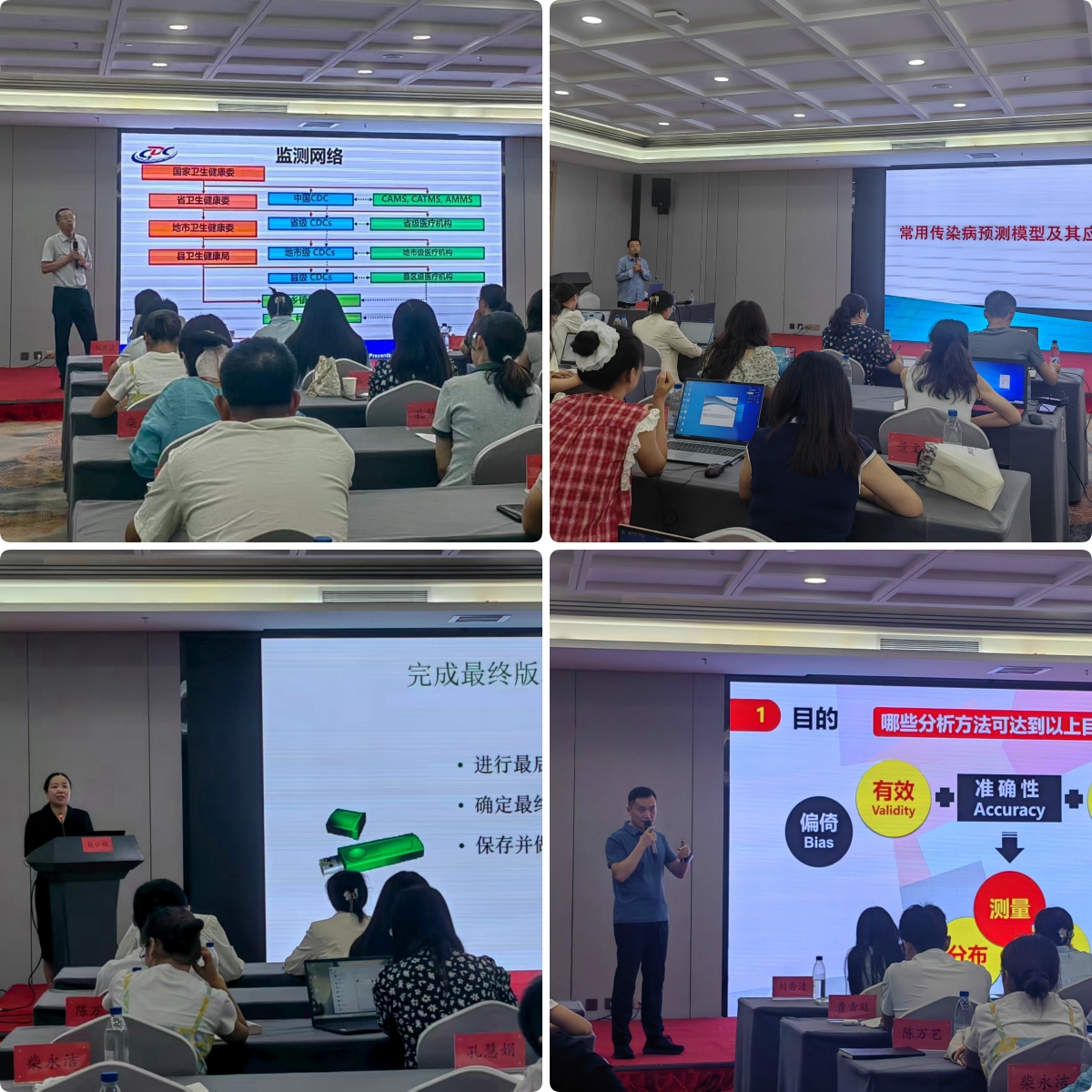 本期培訓(xùn)為監(jiān)測預(yù)警專業(yè)骨干培訓(xùn)項目第二次集中培訓(xùn),培訓(xùn)堅持理論與實踐相結(jié)合,邀請了甘肅省疾控局、蘭州大學(xué)、甘肅中醫(yī)藥大學(xué)及省、市疾控中心從事傳染病監(jiān)測預(yù)警相關(guān)工作的專家學(xué)者擔(dān)任授課教師,培訓(xùn)內(nèi)容涵蓋利用監(jiān)測數(shù)據(jù)開展傳染病預(yù)測預(yù)警、傳染病的系統(tǒng)評價與meta分析研究、ArcGIS基本操作及其在疾病監(jiān)測中的應(yīng)用、傳染病多點觸發(fā)智慧化監(jiān)測預(yù)警關(guān)鍵技術(shù)概述及實踐應(yīng)用、公共衛(wèi)生監(jiān)測系統(tǒng)評價、常用傳染病預(yù)測模型及其應(yīng)用等。通過學(xué)習(xí),學(xué)員們對傳染病預(yù)測預(yù)警的流程和方法有了更深刻地理解和運用。