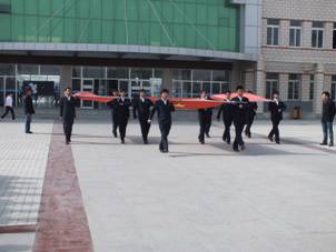 2013年4月8日早上7:30,汽車工程系全體師生在1號教學樓前舉行了升國旗儀式。