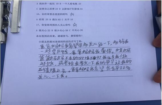 最后志愿者們坐下來(lái)相互探討提出建議:父母努力承擔(dān)孩子的教育責(zé)任。父母雖在外,但是還是應(yīng)該采取多種方式,多與孩子的溝通交流,以了解孩子的生活、學(xué)習(xí)、情感變化,比如多用電話(huà)聯(lián)系。父母是孩子的第一任老師,因此父母的教育是對(duì)孩子影響最大的,因此父母應(yīng)該多關(guān)心孩子,如果不能常回家,則應(yīng)該向孩子的老師說(shuō)明自己的情況,了解子女的發(fā)展變化,以共同商討教育孩子的策略和方法。同時(shí)也要加強(qiáng)關(guān)愛(ài)留守兒童的各類(lèi)社會(huì)宣傳。充分發(fā)揮各媒體的作用,使更多的人加入到對(duì)留守兒童教育問(wèn)題的研究中來(lái),使各界各類(lèi)人士共同來(lái)探討和研究,從而使留守兒童教育問(wèn)題得到切實(shí)的解決。