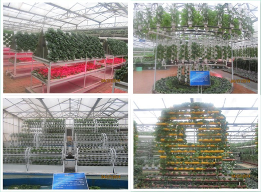 蔬菜高科技無土栽培模式展廳展示了各種無土栽培模式,主要有水培、霧培、基質(zhì)培、管道培、立柱培、吊管培、螺旋式立體栽培等。管道設(shè)施密密匝匝、高低參差、錯落有致,葉綠、花紅、果黃,使展廳成為集各種工藝造型展示和高科技管道栽培模式于一體的薈萃園。