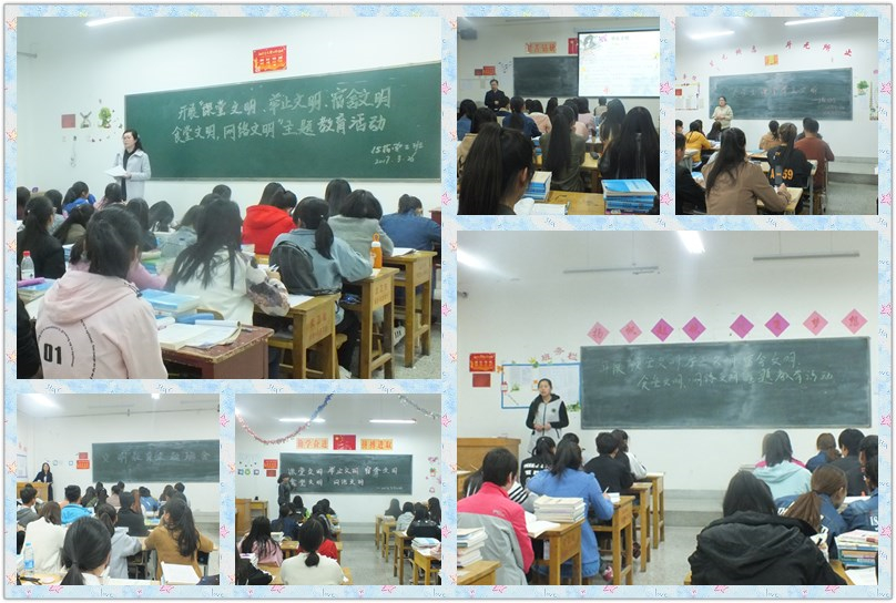各班班會從什么是文明講起,聯(lián)系生活實(shí)際,講述校園文明、家庭文明和社會文明的重要性。各班主任首先向同學(xué)們闡述了對于當(dāng)代大學(xué)生來說,文明修身和專業(yè)學(xué)習(xí)同等重要,專業(yè)學(xué)習(xí)主要培養(yǎng)大學(xué)生的科學(xué)精神,而文明修身主要培養(yǎng)大學(xué)生的人文精神,二者缺一不可。通過講述身邊同學(xué)的故事,指出校園、家庭和社會上存在的不文明、不和諧現(xiàn)象,要求同學(xué)們對自身言行舉止進(jìn)行約束,共同攜手,提高自身文明行為,提升大家的思想道德和人文素質(zhì)。隨后,由同學(xué)們就“文明行為”發(fā)表了自己的看法,大家由主題聯(lián)想到自己身邊的一些不文明的行為,并就這些不文明行為發(fā)表了自己觀點(diǎn),同時(shí),同學(xué)們就如何提高自身道德素養(yǎng)、如何更好地做到文明修身提出了自己的建議和意見。經(jīng)過同學(xué)們的積極發(fā)言和認(rèn)真討論,大家認(rèn)為只有文明的個人才會有文明的班級團(tuán)體,才會有文明的校園,才會有和諧的社會。